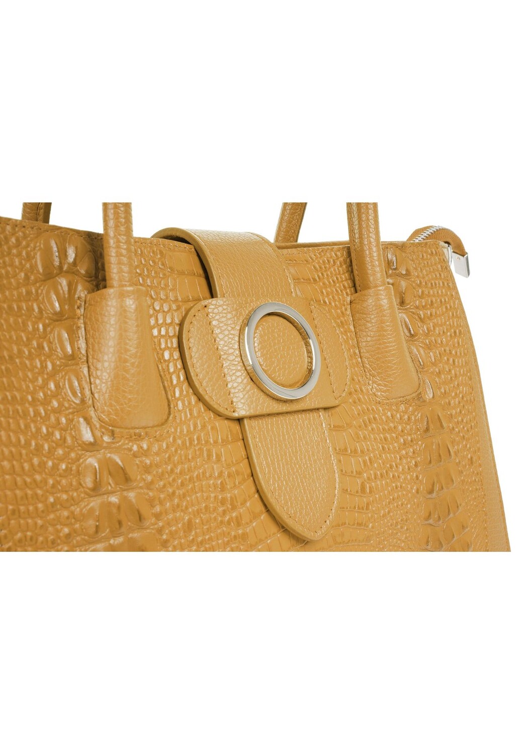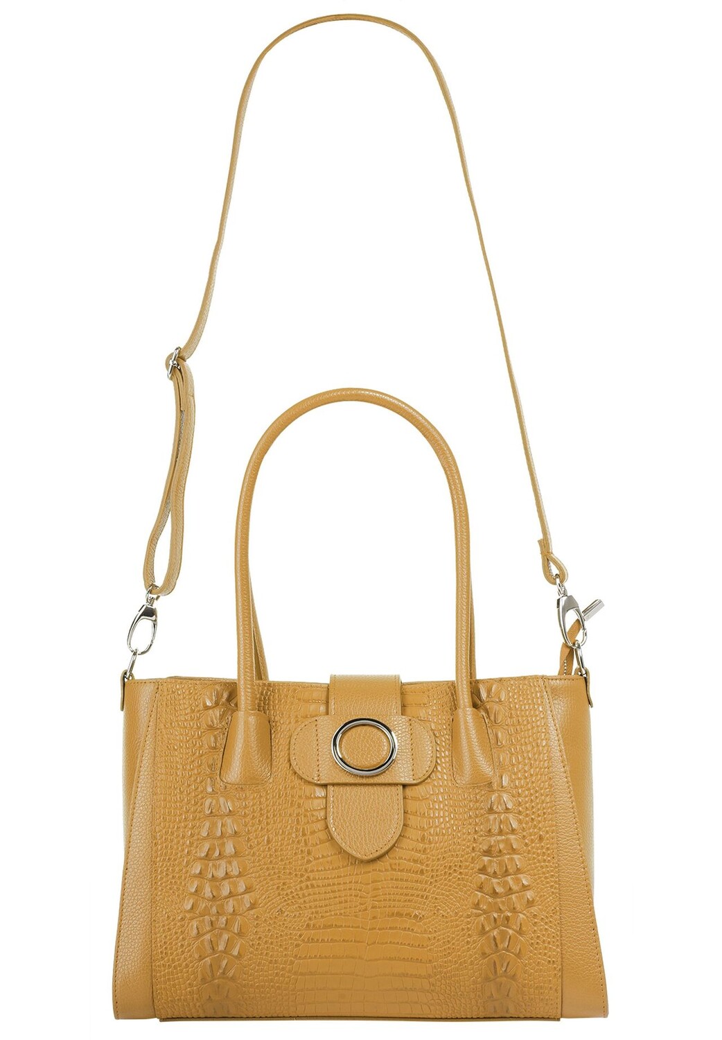 Описание товара: Женская кожаная сумка-шоппер под кожу крокодила от Cluty определенно для Вас! Замысловатое тиснение под кожу крокодила станет изюминкой любого повседневного наряда. Благодаря центральному карману на молнии основное отделение разделено на два. Это дает вам больше свободы в аккуратном хранении кошелька, бутылки с водой и салфеток. Особенно умно: петля с серебряной деталью закрывает кожаную сумку и выглядит шикарно. В зависимости от случая вы можете выбрать один из двух вариантов ношения: в сумочке или через плечо. Это делает вашу кожаную сумку идеальной для покупок и повседневного использования. Напольные гвозди защищают ваш Kroko Shopper от износа.