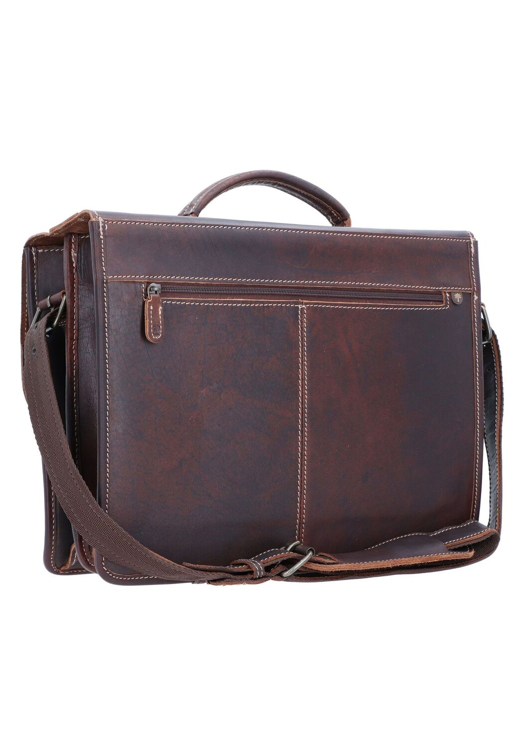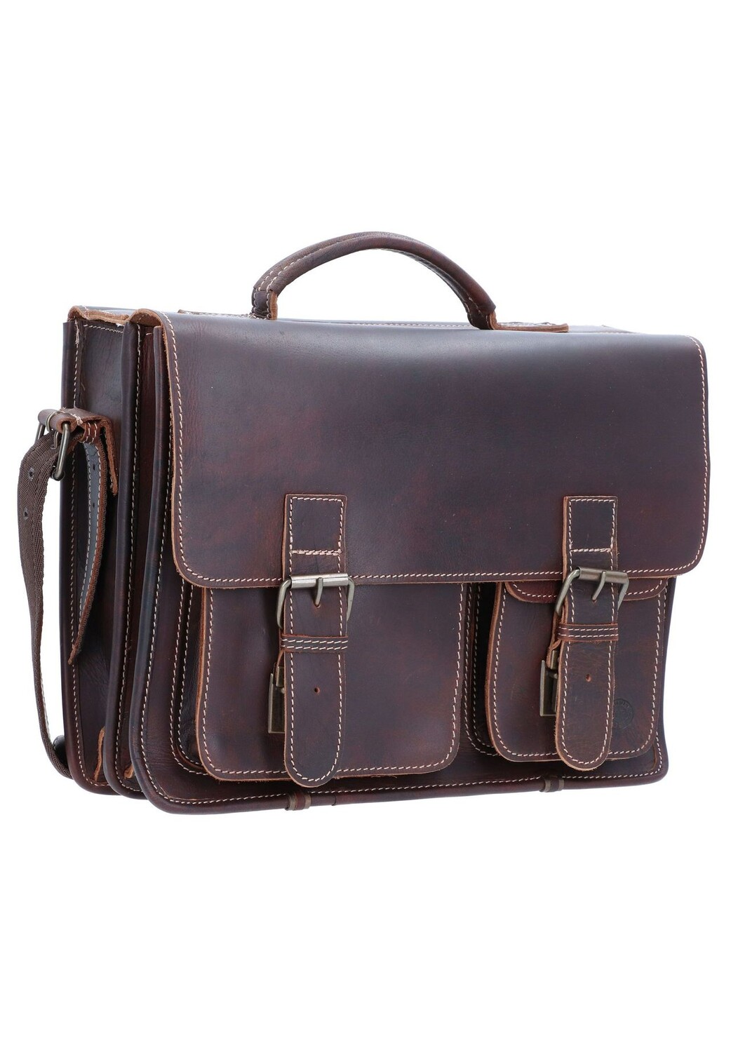 Портфель Greenburry из прочной кожи буйволиного жира. Элегантный винтажный стиль придает каждой сумке свою индивидуальность. Между двумя основными отделениями портфеля находится практичное отделение на молнии для документов формата А4.