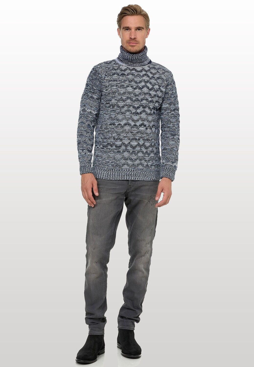 Модный мужской свитер с высоким воротником от Rusty Neal впечатляет модным узором в клетку. Он также изготовлен из мягкого, высококачественного и эластичного хлопка, что гарантирует абсолютно идеальную посадку. Благодаря качественному исполнению материалов после стирки цвет не теряется, а усадка свитера больше не проблема! Этот универсальный свитер гарантирует стильный внешний вид, как для элегантного ношения в офисе, так и для повседневного ношения днем. Он впечатляюще показывает, насколько современным и в то же время вневременным может быть свитер. Рост модели 1,85 м, вес около 80 кг, размер M (средний).