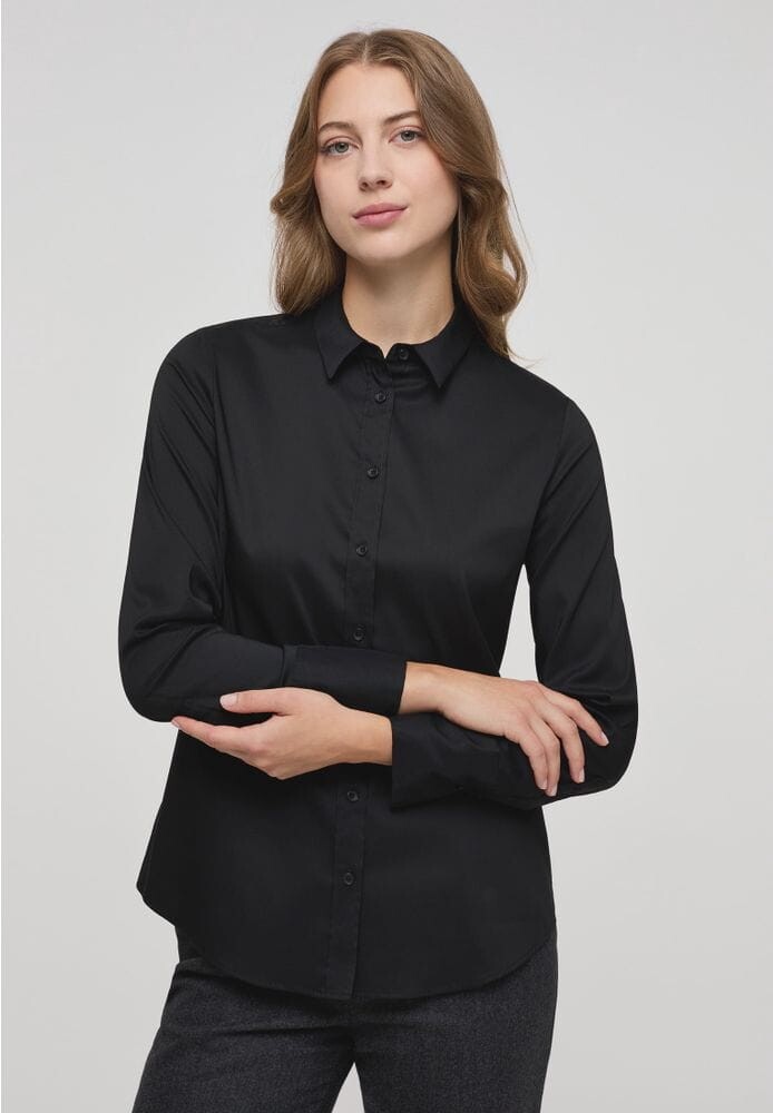 Блузка, блузочный воротник, для женщин ETERNA, черный