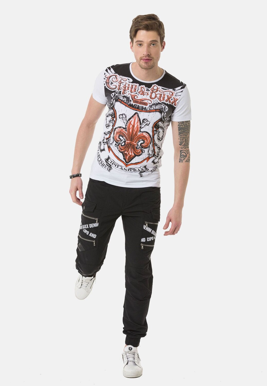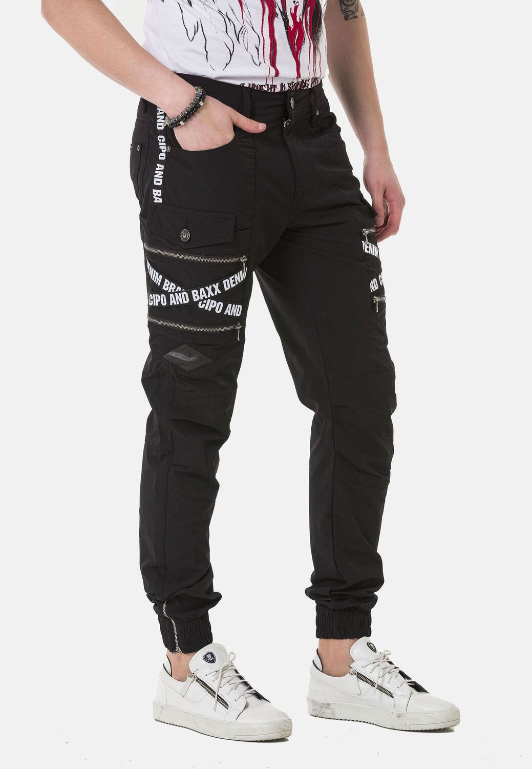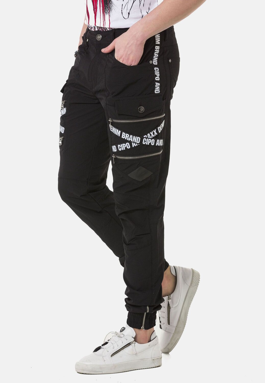 Эта мужская модель Cipo & Baxx своим красивым видом доказывает, насколько модными могут быть брюки-карго. Карманы оснащены молниями и таким образом гарантируют абсолютно безопасное хранение мобильных телефонов, ключей и т. д. Помимо модного дизайна с модной надписью бренда, высокое качество брюк также впечатляет и делает модель идеальным спутником в повседневной жизни. и досуг.