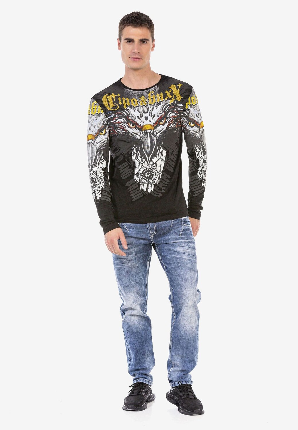 Рубашка с длинными рукавами и классным принтом орла CIPO & BAXX, черный