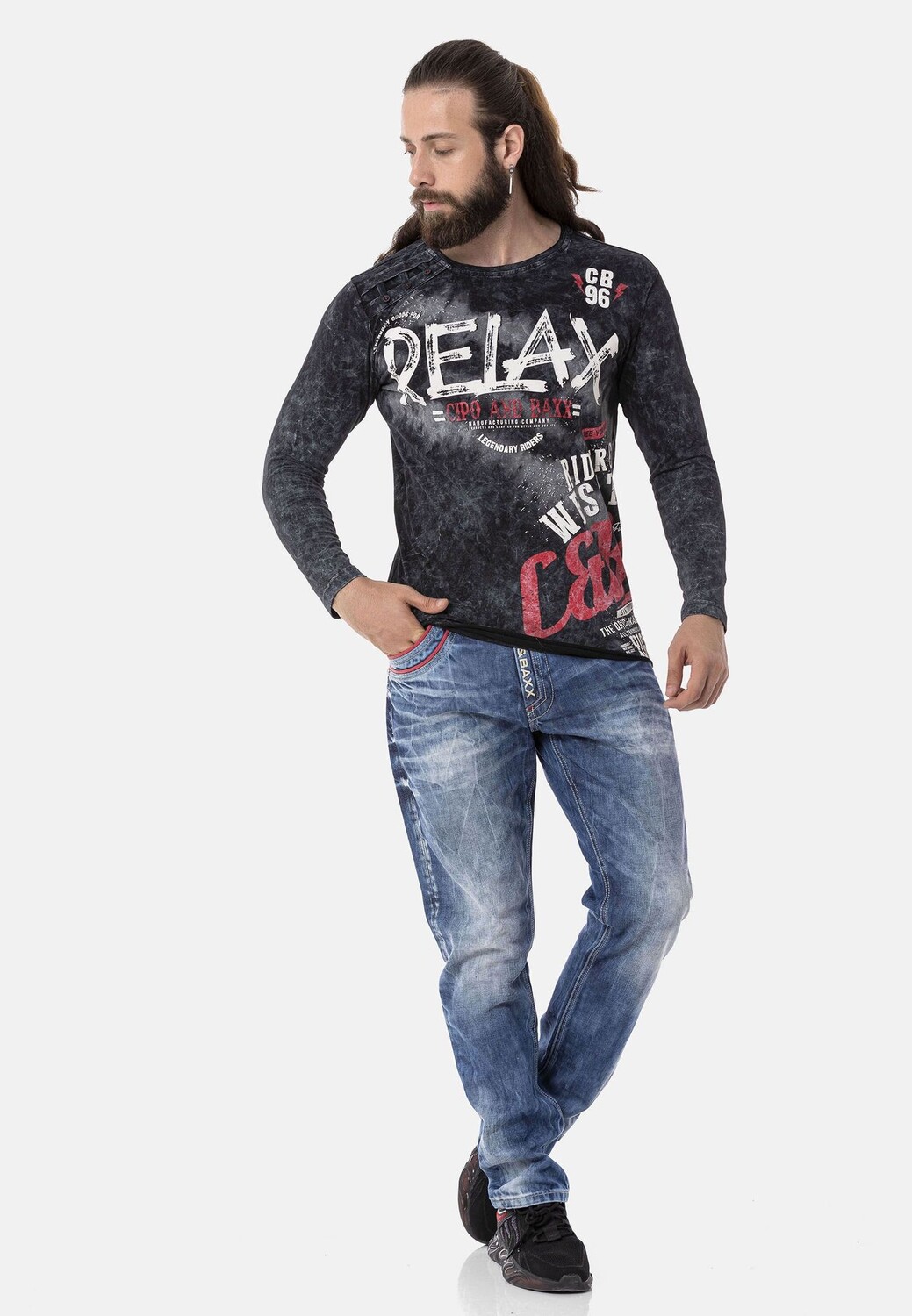 Рубашка с длинными рукавами и крупным принтом CIPO & BAXX, черный