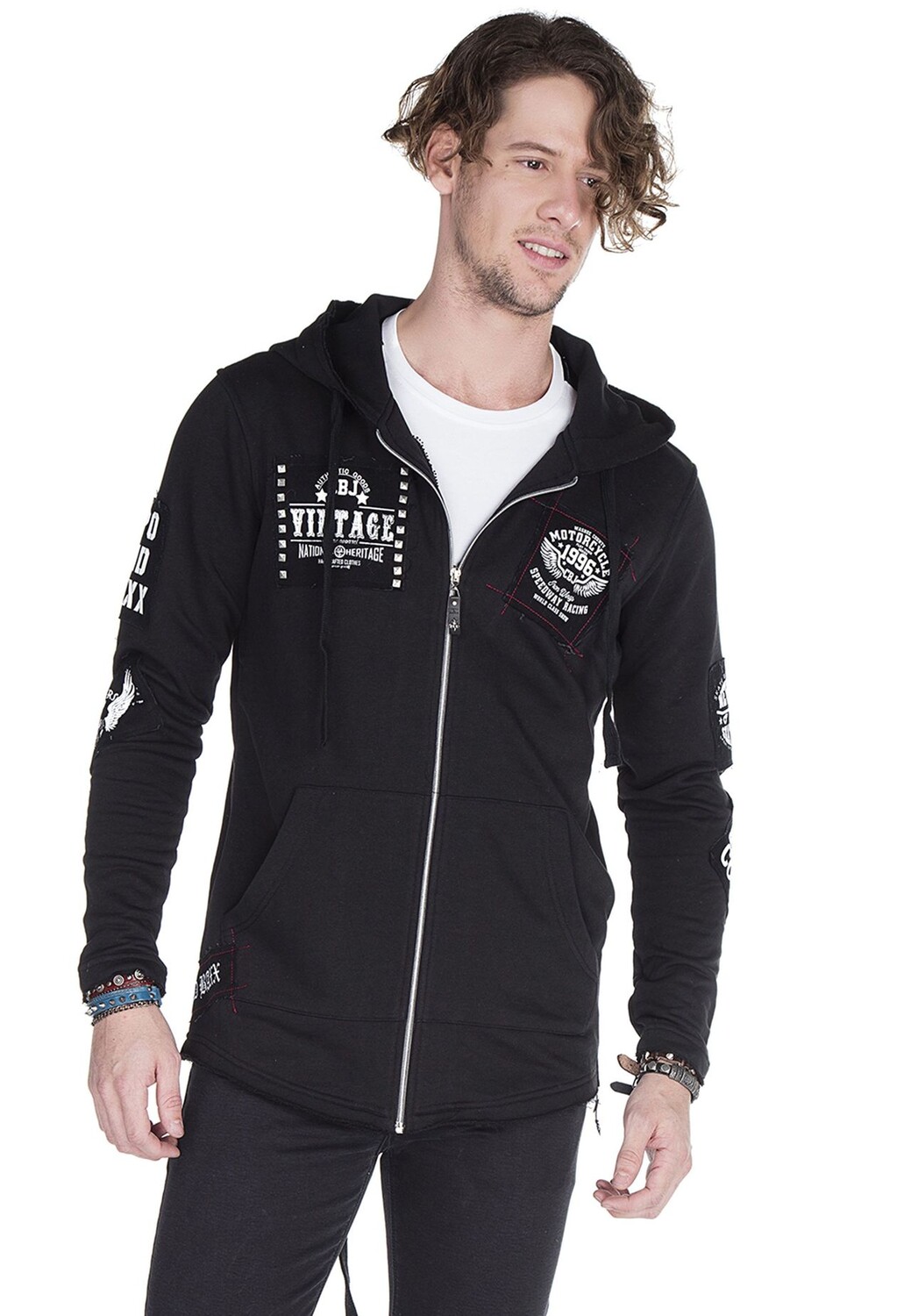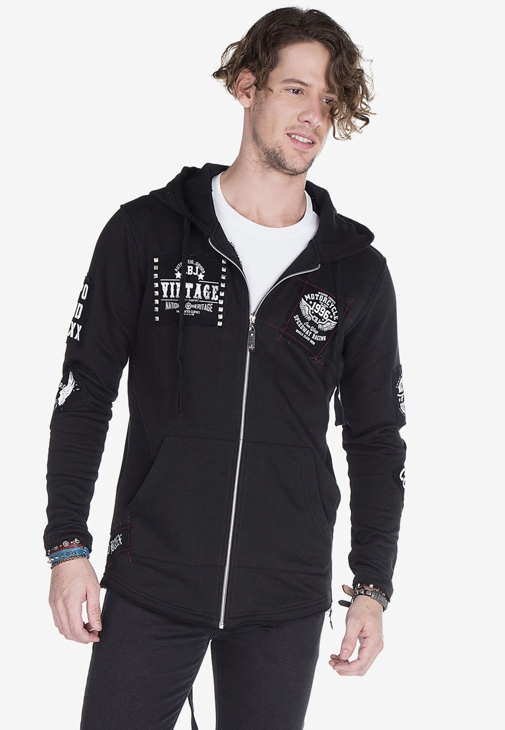 Эта повседневная толстовка впечатляет вышивкой и принтами на груди, рукавах и капюшоне. Последний можно индивидуально отрегулировать с помощью шнурка. Производство чистого хлопка обеспечивает высокий уровень комфорта. Классную модель можно чудесно комбинировать для создания непринужденных повседневных нарядов.