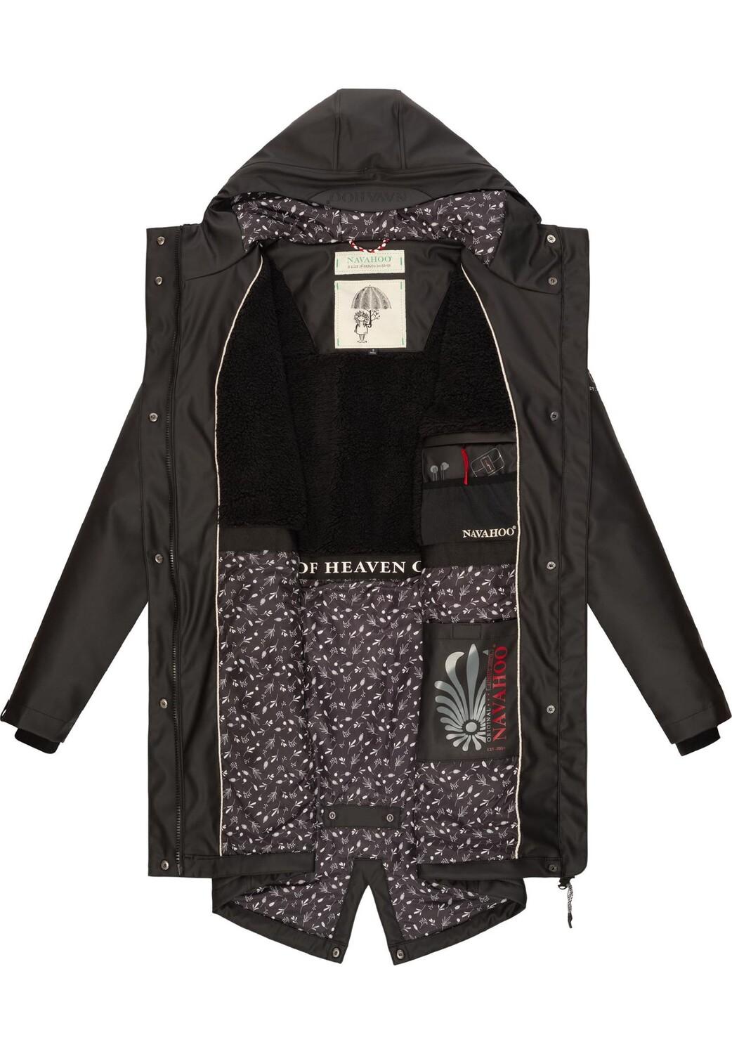 Описание товара: ВИД: Водонепроницаемая женская куртка-дождевик на подкладке от Navahoo с большим капюшоном и подчеркивающим фигуру кроем - идеально подходит для влажной и холодной погоды в переходный период. МАТЕРИАЛ: Функциональное пальто из водонепроницаемого наружного материала с сварные швы, приятная мягкая внутренняя подкладка из плюшевого меха в верхней половине куртки и шелковистая ткань в нижней половине и на капюшоне. ПОДХОД: Теплая дождевик удлинён сзади (крой «ласточкин хвост» с прорезью для ходьбы) и имеет идеальная длина по ягодицам; по желанию можно индивидуально отрегулировать талию. ДЕТАЛИ: Множество внутренних карманов и наружные карманы с клапанами на подкладке (для предотвращения холода рук) обеспечивают много места для хранения, высокозастегивающаяся молния (с защитой подбородка). ) защищает шею от ветра и холода, расширенный спереди капюшон обеспечивает идеальную защиту от дождя.