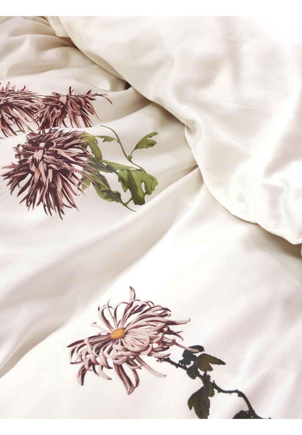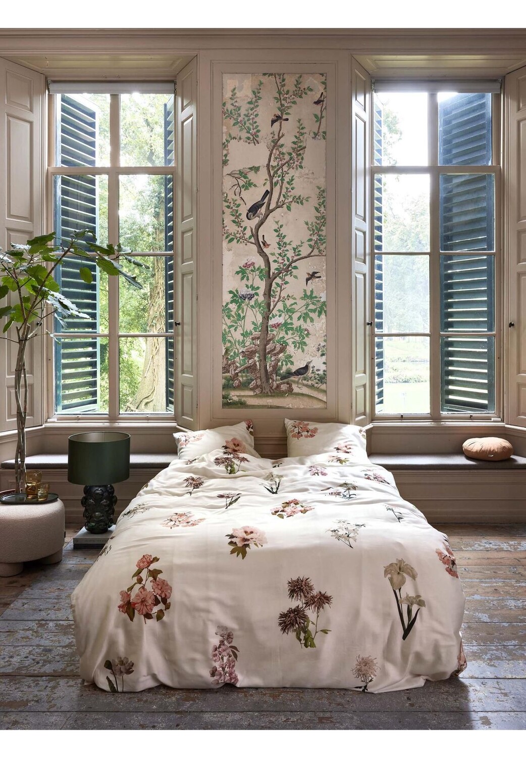 Романтический, воздушный цветочный принт на успокаивающем однотонном фоне. В Аннебелле вы можете обнаружить различные цветы, такие как полосатая камелия, лилии, японский пион, вишневый цвет, японский ирис, хризантема и лотос, все из которых происходят из Рейксмузеума. Это цветные фотографии японского фотографа Кадзумасы Огавы примерно 1890 года. Грамотное размещение на мягком, слегка контрастном фоне создает очень привлекательный отпечаток. Чтобы спальня выглядела однотонной, выверните пододеяльник наизнанку.