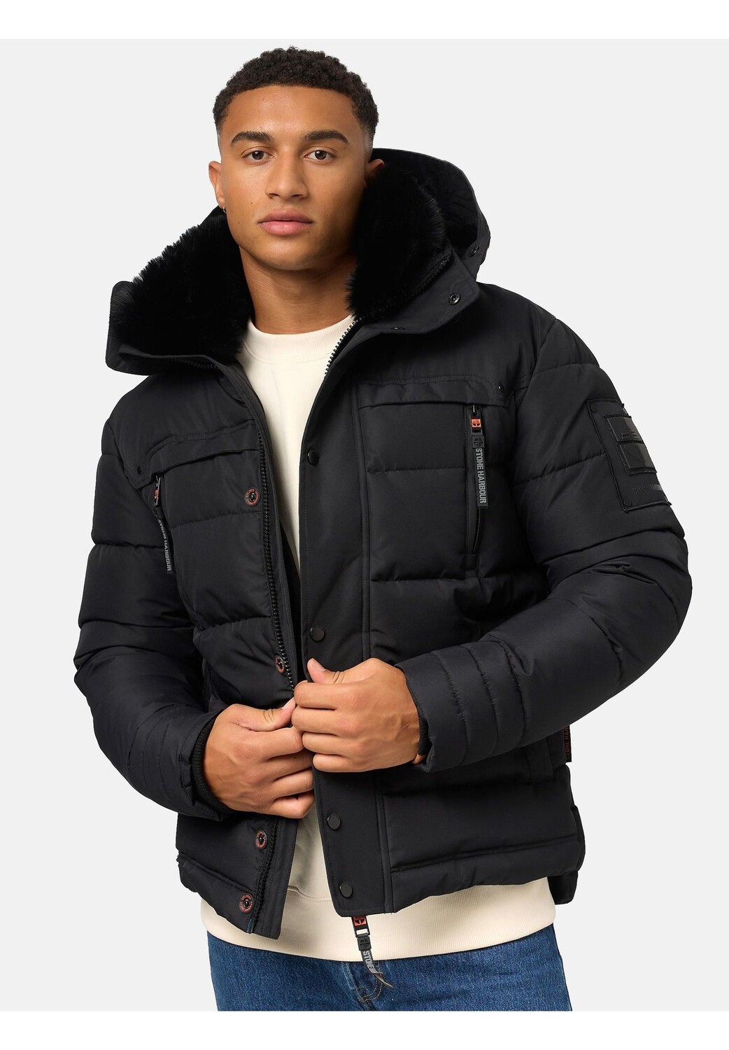 Описание товара: ВИД: Городская мужская зимняя куртка с приятным воротником из мягкого искусственного меха и большим капюшоном (оба съемными) от премиальной марки «STONE HARBOR», неповторимым вычурным металлическим логотипом и многочисленными модными деталями. МАТЕРИАЛ: Стеганая куртка из приятного нескользящего материала, прочный внешний материал (водо- и ветроотталкивающий), теплая и пушистая подкладка из искусственного меха приглашает прижаться к телу, несмотря на толстую подкладку, куртку приятно носить. Размер: длина верха до низ (немного длиннее сзади), благодаря прямому крою. Его можно носить свободно со свитером под ним, ширину капюшона можно регулировать с помощью внутренней резинки. ДЕТАЛИ: Наружные карманы на флисовой подкладке не только сохраняют вам приятно и тепло, а внутренние карманы также предлагают много места для хранения вещей, воротник из искусственного меха сохраняет тепло и сохраняет тепло, но при необходимости его можно снять (как и капюшон. Городская куртка для активного отдыха впечатляет).