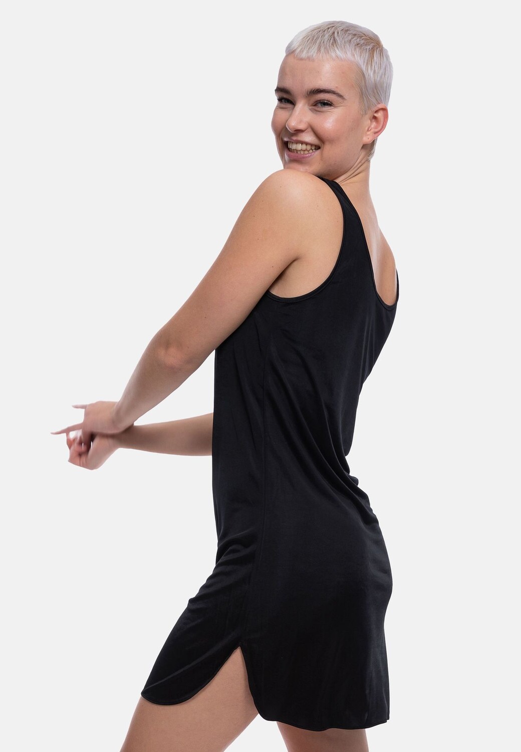 Короткое нижнее белье из серии Elegance. Идеальное сочетание вискозы и микрофибры делает нижнее белье шелковистым и гарантирует максимальный комфорт. Воздушный, свободный крой идеально подходит для ношения под платьями и юбками. Нижнее платье также имеет широкие бретели, которые легко закрывают бретели бюстгальтера.