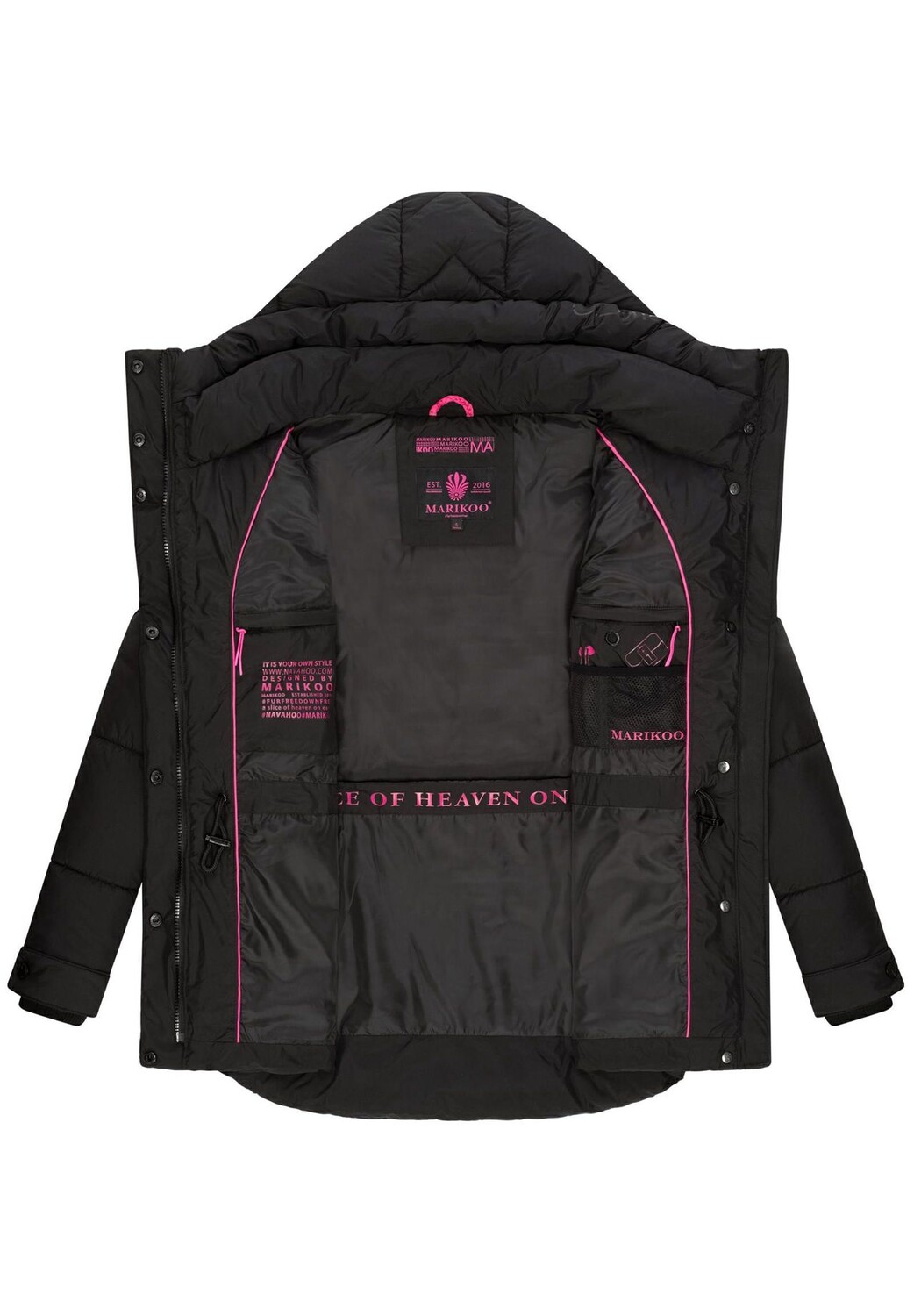 Описание товара: СМОТР: Теплая, подчеркивающая фигуру зимняя куртка от Marikoo с модными контрастными деталями – настоящий фаворит для холодных осенних и зимних дней! МАТЕРИАЛ: Куртка средней толщины на подкладке из матового мерцающего внешнего материала (водо- и ветроотталкивающего), благодаря высококачественной набивке куртка одновременно очень легкая и очень теплая, что делает ее удобной в ношении. ПОДХОД: Женский. стеганая куртка фигурного, слегка приталенного кроя, который можно регулировать с помощью внутренних завязок на талии, куртка имеет большую длину до низа и немного длиннее сзади, чем спереди. ДЕТАЛИ: Высокий воротник обеспечивает идеальную защита от ветра лучше, чем любой шарф, широкие внешние карманы на подкладке. Регулируемый капюшон, регулируемые края рукавов и эластичные ребристые манжеты на концах рукавов сохраняют тепло и комфорт.