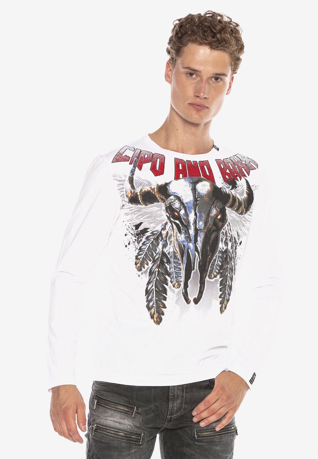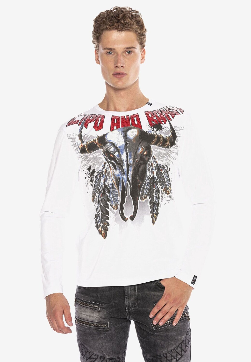 Рубашка с длинными рукавами и классным принтом черепа CIPO & BAXX, белый