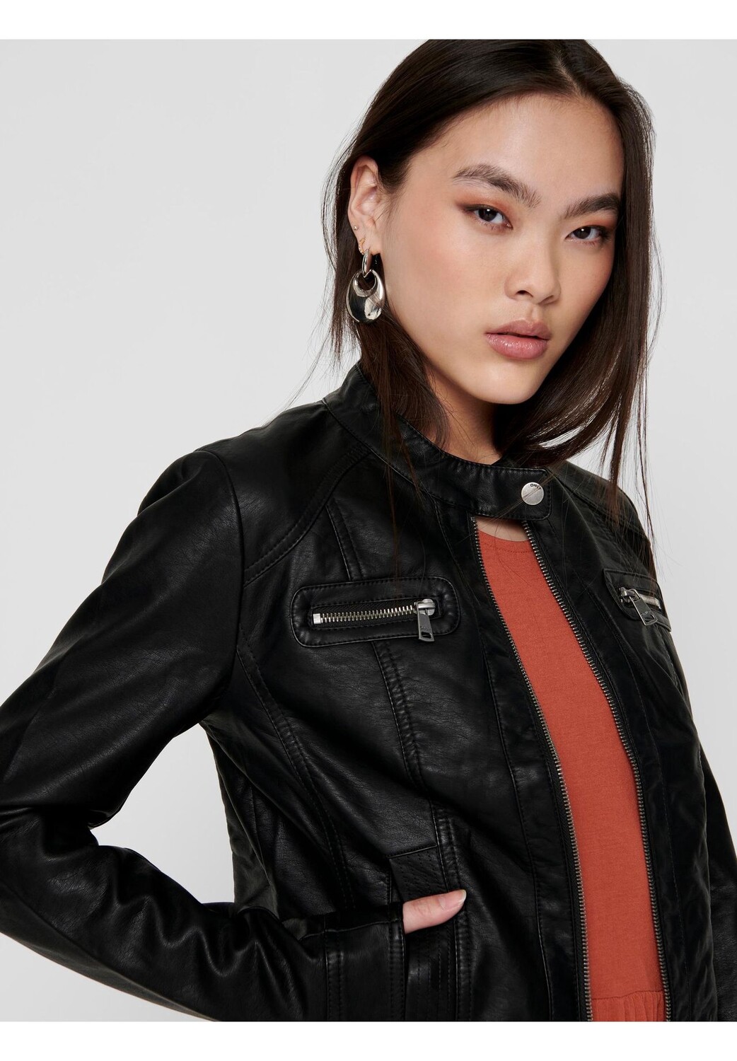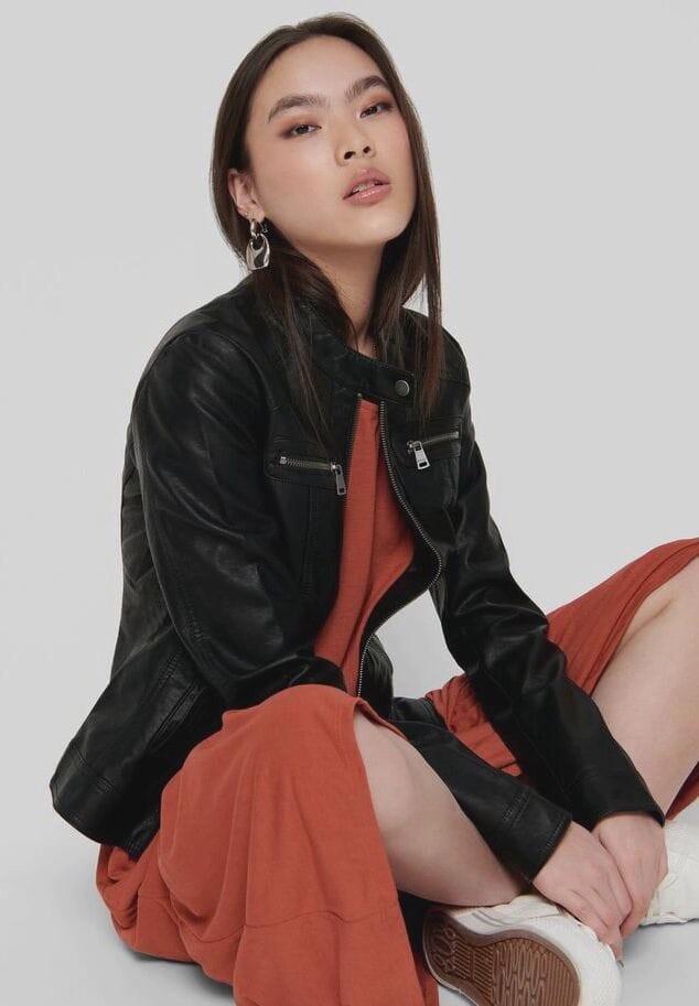 Куртка косуха, воротник стойка, женская ONLY, черный
