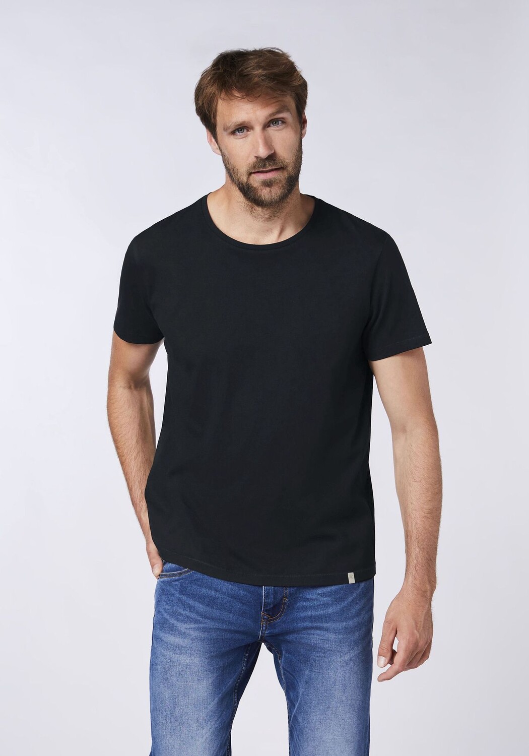 Контрастный круглый вырез и заплатка с логотипом на переднем крае