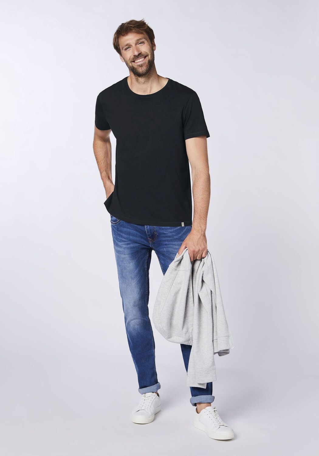 Мягкий одинарный джерси с персиковой отделкой, приталенного кроя и прямого кроя