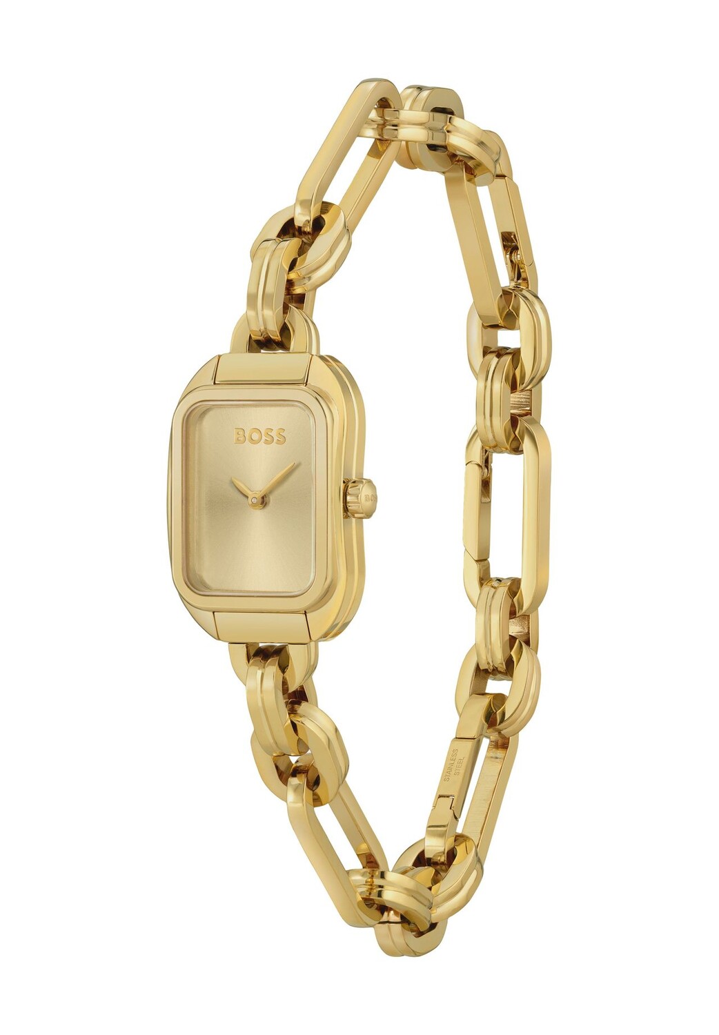 Особенности нежные женские часы с квадратным корпусом необычный браслет с крупными звеньями цепочки работает без индексы для аккуратного вида Цвет: золото Цвет дисплея: ЗОЛОТО Серия: HAILEY Целевая группа: Женщины Цвет часов: Браслет: золото, корпус: золото, циферблат: золото, застежка: золото Материал часов: Браслет: нержавеющая сталь IP золото, корпус: нержавеющая сталь IP золото, задняя крышка: нержавеющая сталь, застежка: нержавеющая сталь IP золото Тип ремешка