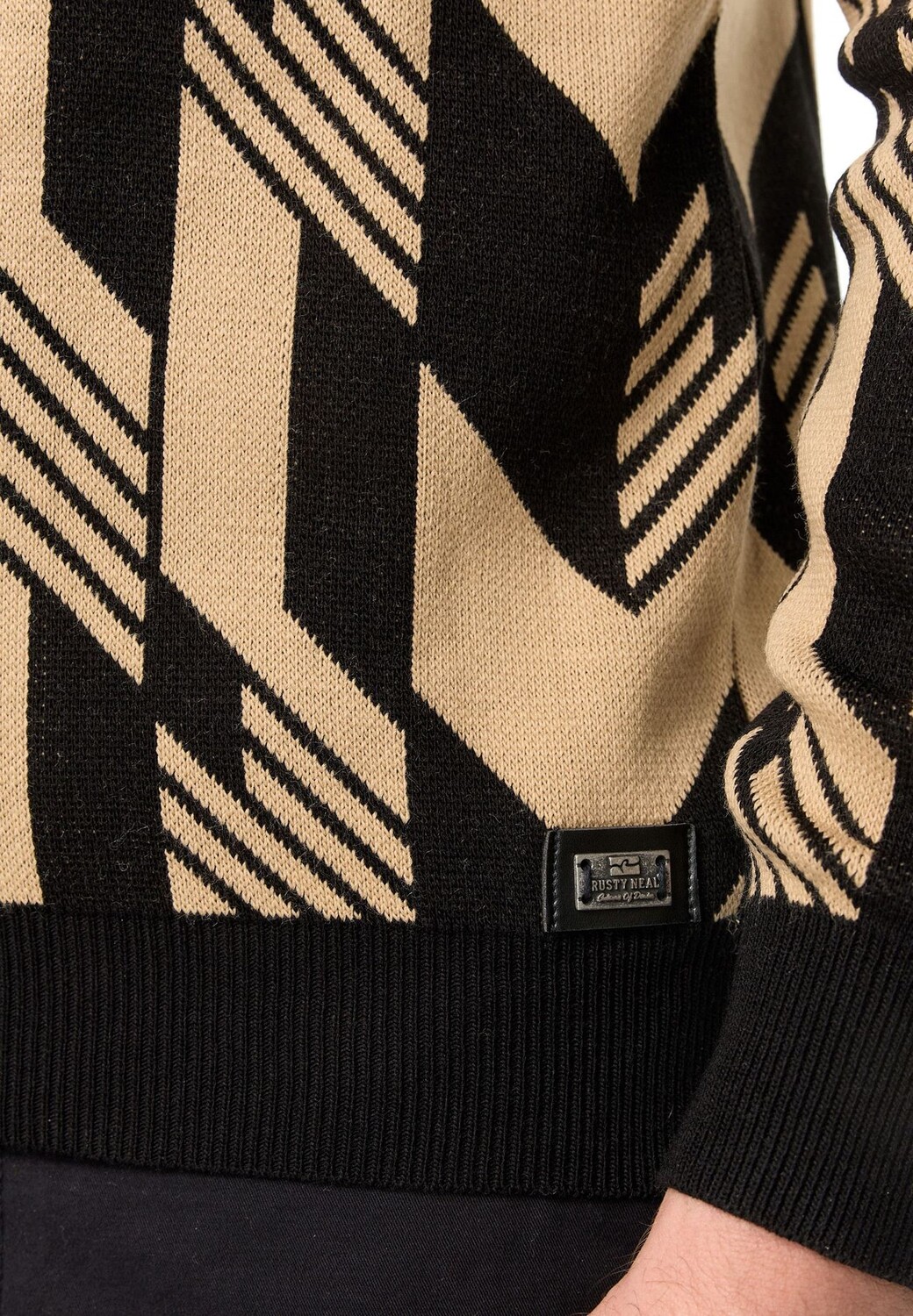 Вязаный свитер в двухцветном исполнении RUSTY NEAL, цвет Schwarz Camel