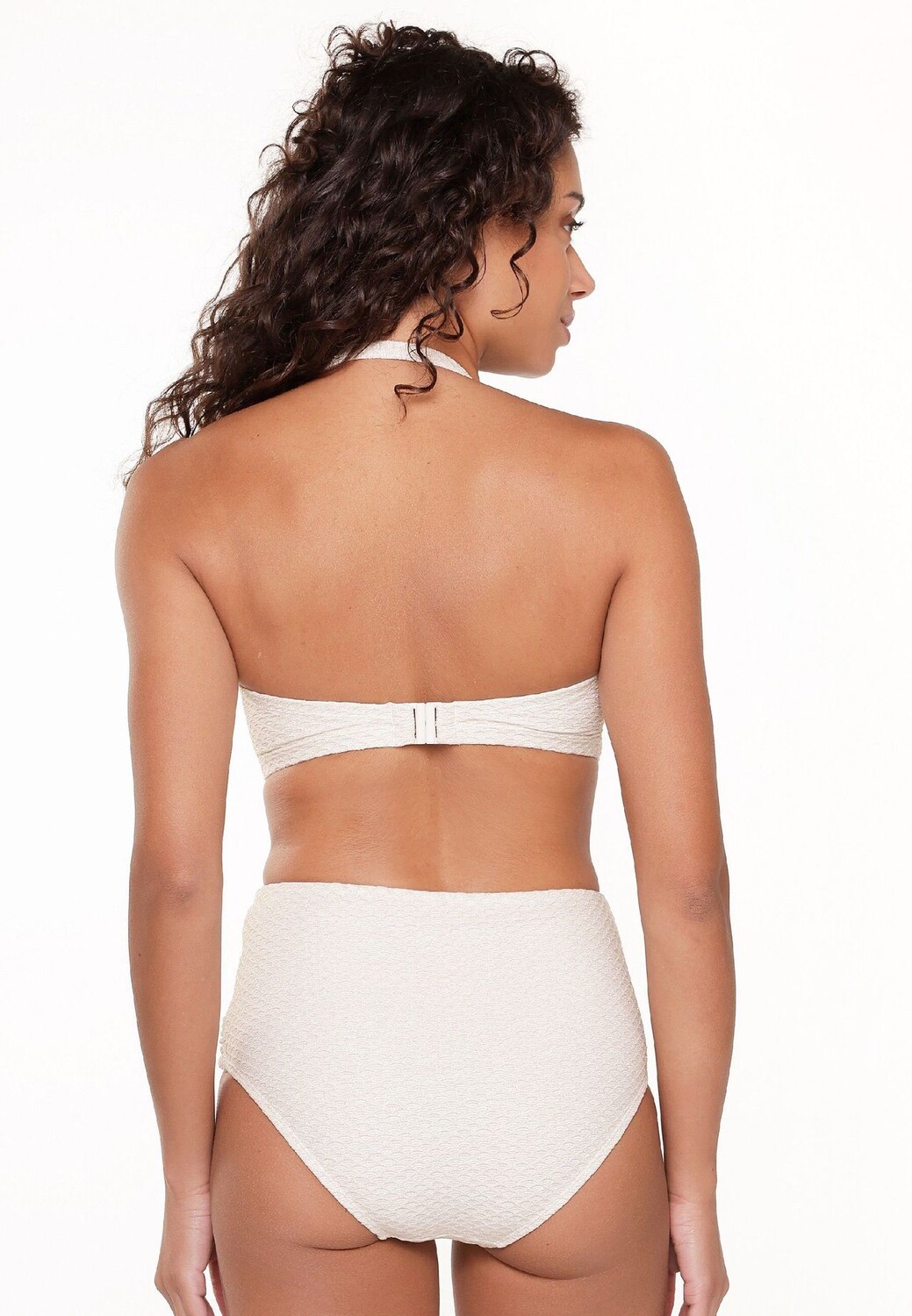 Восстань и сияй в этой фантастической серии! Эти модели привлекают внимание своей роскошной фактурной тканью и золотыми аксессуарами. Этот верх бикини-бандо имеет заранее заданную форму и оснащен регулируемым бретелем через шею, который можно снять.