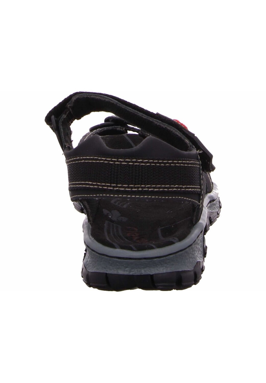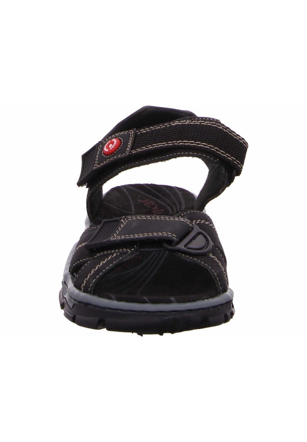 Красивые босоножки Rieker из тонкой высококачественной искусственной кожи. Обувь имеет нормальную ширину. Подошва изготовлена ​​из резины. Застежка-липучка позволяет легко и удобно надевать и снимать обувь, а также обеспечивает надежную фиксацию. Также возможна плавная регулировка по ноге. Размер обуви обычный.
