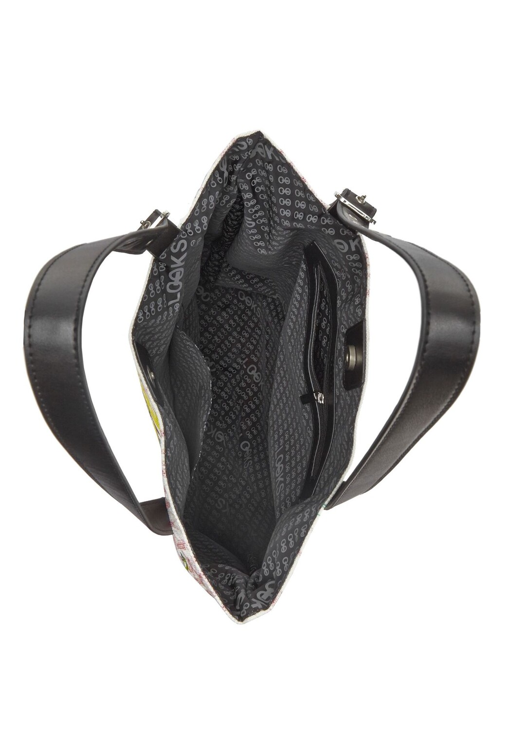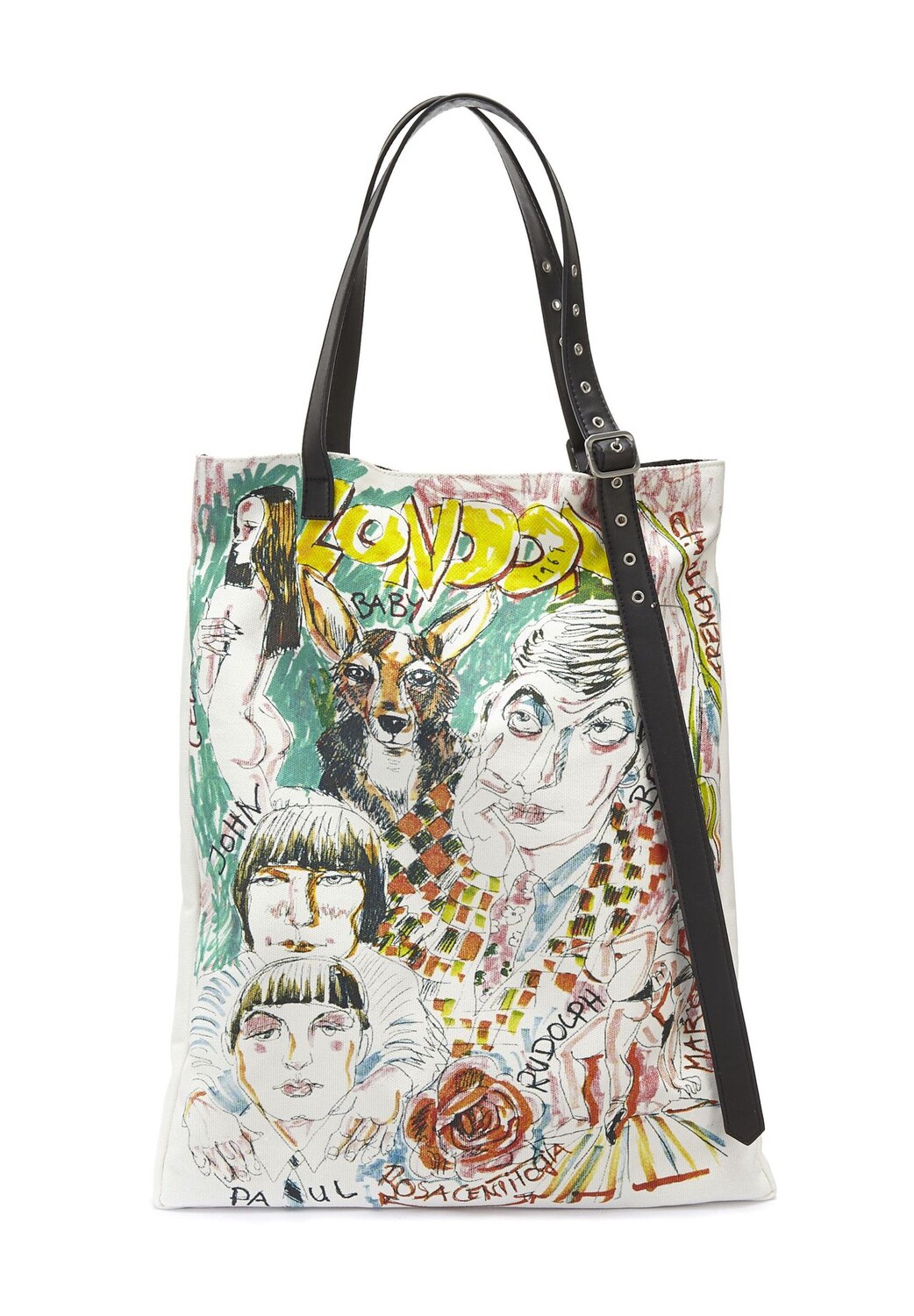 Повседневная и просторная сумка-шоппер из холста из переработанного хлопка с оригинальным принтом от LOOKS от Wolfgang Joop. Для новой летней коллекции Вольфганг Йооп нарисовал сценарии и иконы 60-х годов, которые символизируют новый дух времени этой эпохи. Помимо «Битлз», это первая мегамодель Джин Шримптон. Высококачественная металлическая эмблема золотистого цвета с выгравированным логотипом и бегунком-молнией LOOKS идеально дополняют этот особенный образ туалетных принадлежностей.