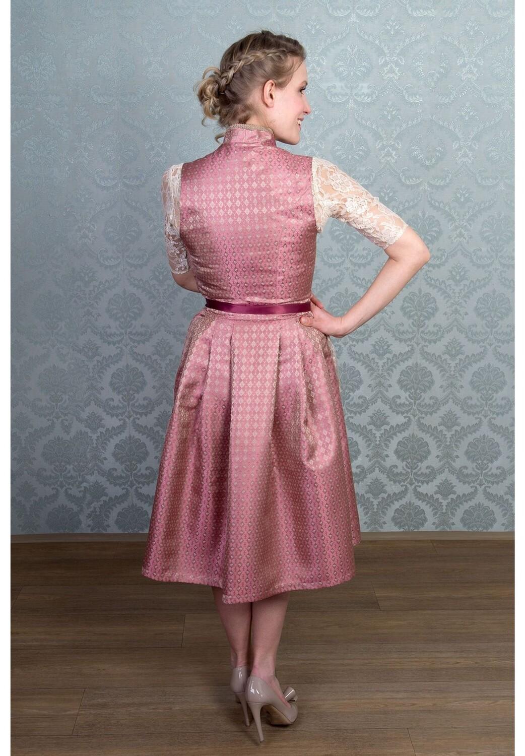 Традиция и элегантность - прекрасно сочетаются в нашей юбке принцессы «Диана». Парчовая ткань этой юбки, украшенной розами и цветочными завитками, элегантно переливается золотом и розовым. Элегантный образ подчеркивает золотая кайма сверху и шнуровка из золотой атласной ленты. В тон идет богато расшитый кружевной фартук нежно-розового цвета. В комплект поставки входят платье в дирндле и фартук в дирндле!