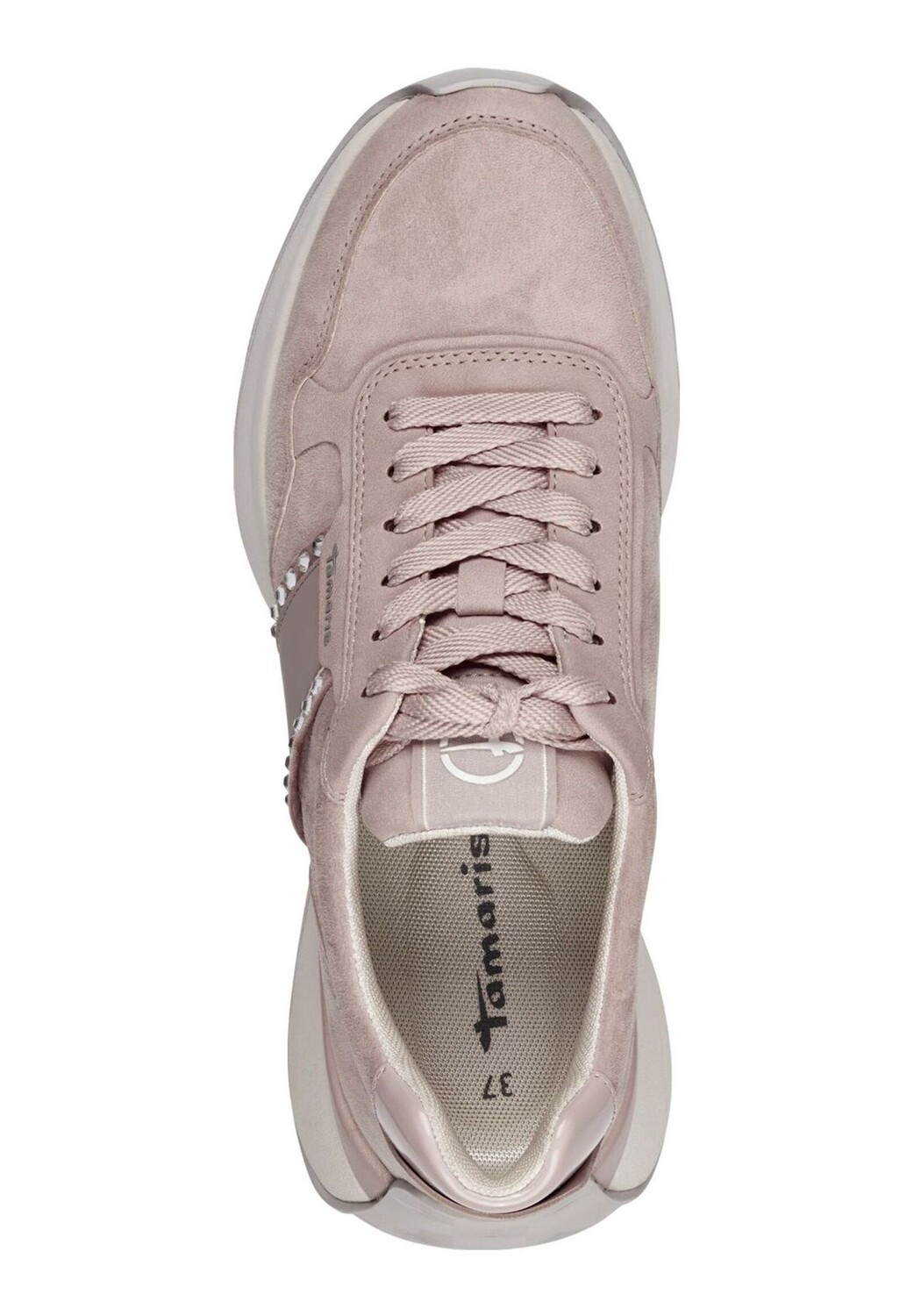 Эти модные кроссовки из дышащей смеси искусственной кожи и сетки от Tamaris особенно подходят для теплых дней года. Простая модель привлекает внимание благодаря мелко расположенным блестящим камням. Шнуровка позволяет обуви идеально приспосабливаться к ноге, обеспечивая оптимальную посадку. При необходимости мягкую стельку можно снять и заменить собственной. С джинсами, юбкой или платьем эти летние кроссовки — настоящий универсал!