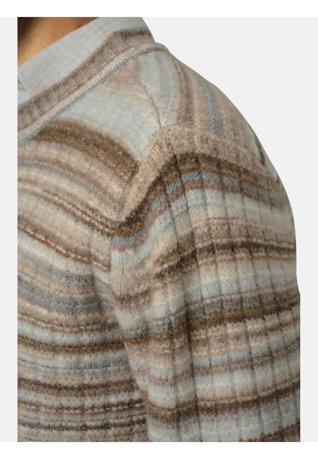 Особенности Изготовлен из легкой в уходе смеси шерсти бежевая полоска Стирать с похожими цветами, Стирать внутри вынуть, слева от утюга, стянуть влажную, высушить лежа Свитер MODAORO с гармоничным полосатым узором Легкая в уходе, согревающая шерстяная смесь Качественный трикотаж с широкой ребристостью Элегантный цветовой градиент полоски