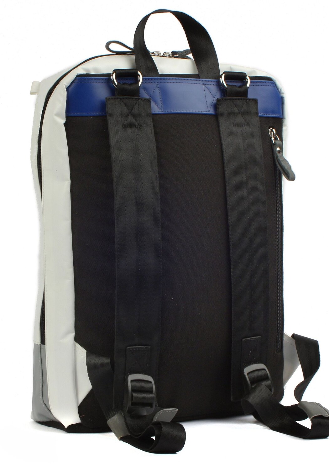 Новый рюкзак Novis 7.1 B сертифицированного производства amfori BSCI также впечатляет своим инновационным кроем. V-образный вырез на голове рюкзака — типичная особенность дизайна 7clouds. Рюкзак поддерживается двумя прочными мягкими лямками, изготовленными из автомобильных ремней безопасности. Они крепятся к D-образным кольцам так, что лямки обхватывают плечо. Прочный стильный рюкзак для работы, учебы, выходных и путешествий.