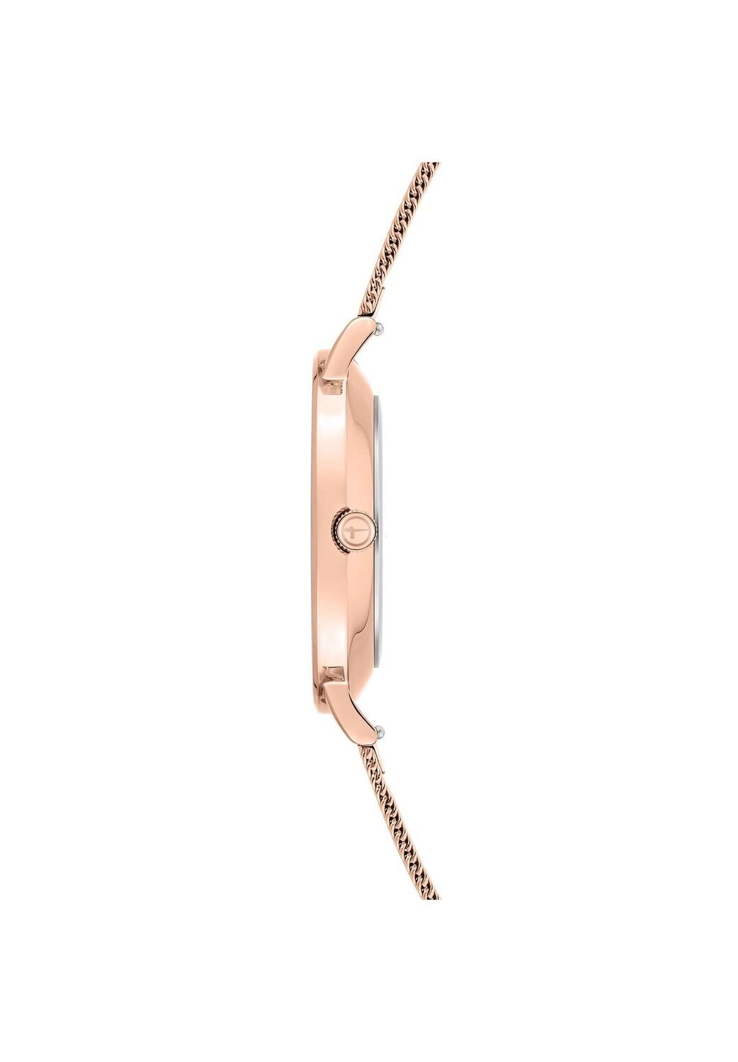 Особенные характеристики Красивые женские часы Tamaris впечатляют своим классическим, но современным внешним видом Полированный металлический корпус Ø 36 мм , устойчивое к царапинам минеральное стекло, водонепроницаемость проверена до 3 бар/атм Миланский ремешок из высококачественной нержавеющей стали с раскладывающейся застежкой Легко читаемый циферблат и надежный кварцевый механизм Упаковано в оригинальную подарочную коробку Tamaris Цвет: розовое золото Цвет дисплея: розовое золото Целевая группа: женщины Цветные часы>: Браслет: розовое золото, корпус: серебро Материал - часы: Браслет: нержавеющая сталь, корпус: металл, задняя крышка: металл Тип часов: Аналоговые часы