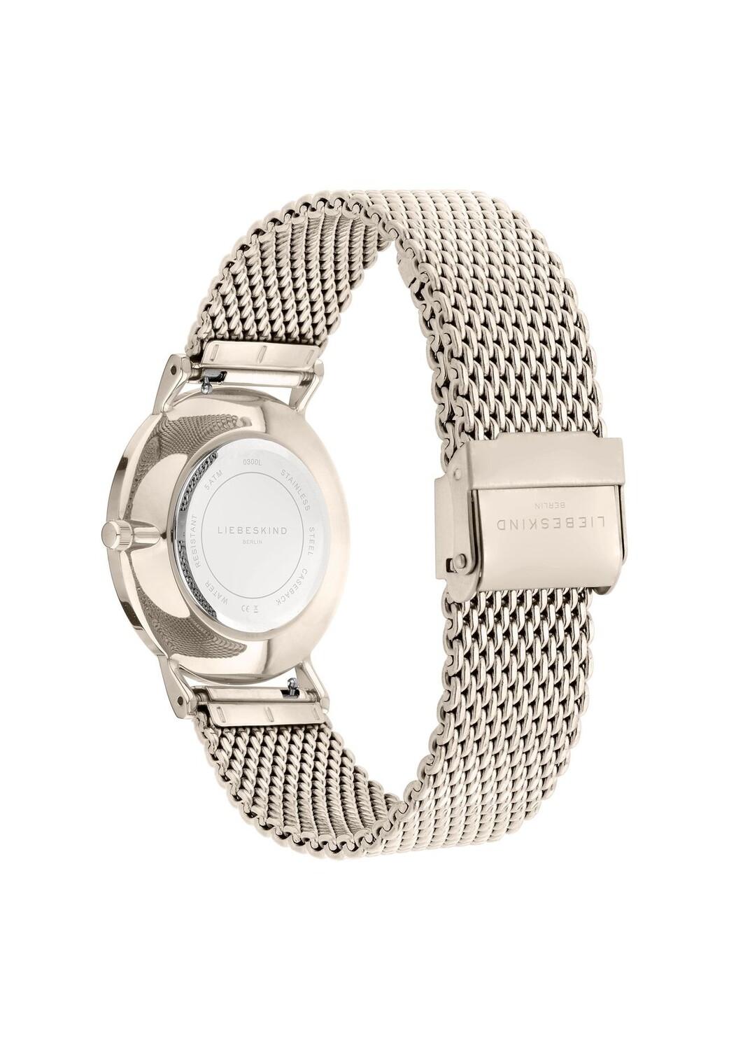 Особенные характеристики Женские часы с двумя стрелками от бренд LIEBESKIND BERLIN с корпусом из нержавеющей стали и высококачественным сетчатым ремешком Корпус из полированной нержавеющей стали Ø 34 мм; Устойчивое к царапинам минеральное стекло, водонепроницаемость проверена до 5 бар/атм Высококачественный сетчатый ремешок в модном стиле ретро с раскладывающейся застежкой Легко читаемый циферблат