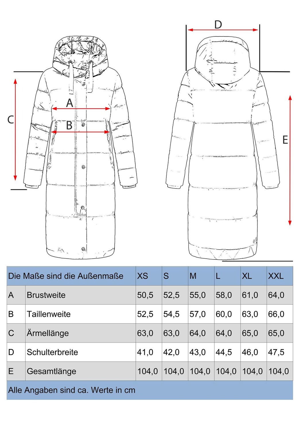 Описание товара: СМОТРЕТЬ: Элегантное женское стеганое пальто на зиму с большим регулируемым завязками капюшоном и внутренним карманом для Bluetooth-наушников и пауэрбанка (в комплект не входят!) - идеальный компаньон в походе. холодное время года (осень и зима). МАТЕРИАЛ: Длинная зимняя куртка с матовым мерцающим и водоотталкивающим внешним материалом, подкладка средней толщины, высококачественная набивка делает куртку одновременно красивой легкой и очень теплой, что делает ее особенно удобной в носке FIT.: Шикарное пальто большой длины примерно до колена (длиннее сзади) сохраняет тепло даже в холодную погоду и заслуживает внимания благодаря своему непринужденно широкому и, следовательно, удобному крою благодаря боковым разрезам (с застежкой-молнией); ), свобода движений не ограничивается.