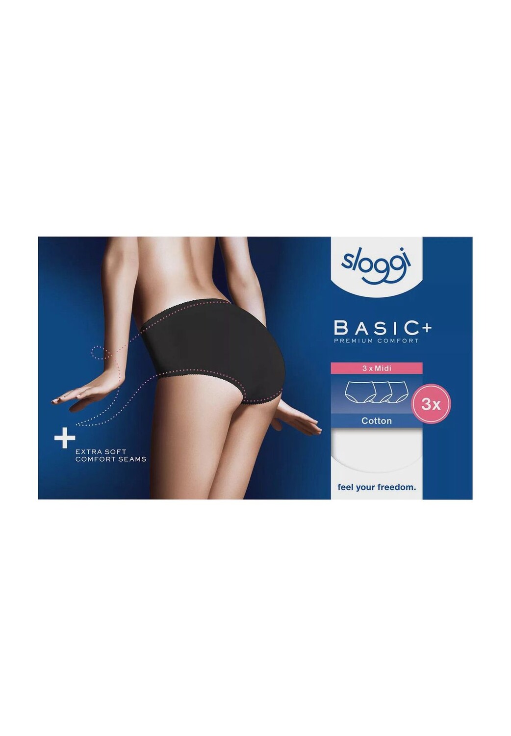 Трусики миди Basic+, 3 шт., женские sloggi, черный