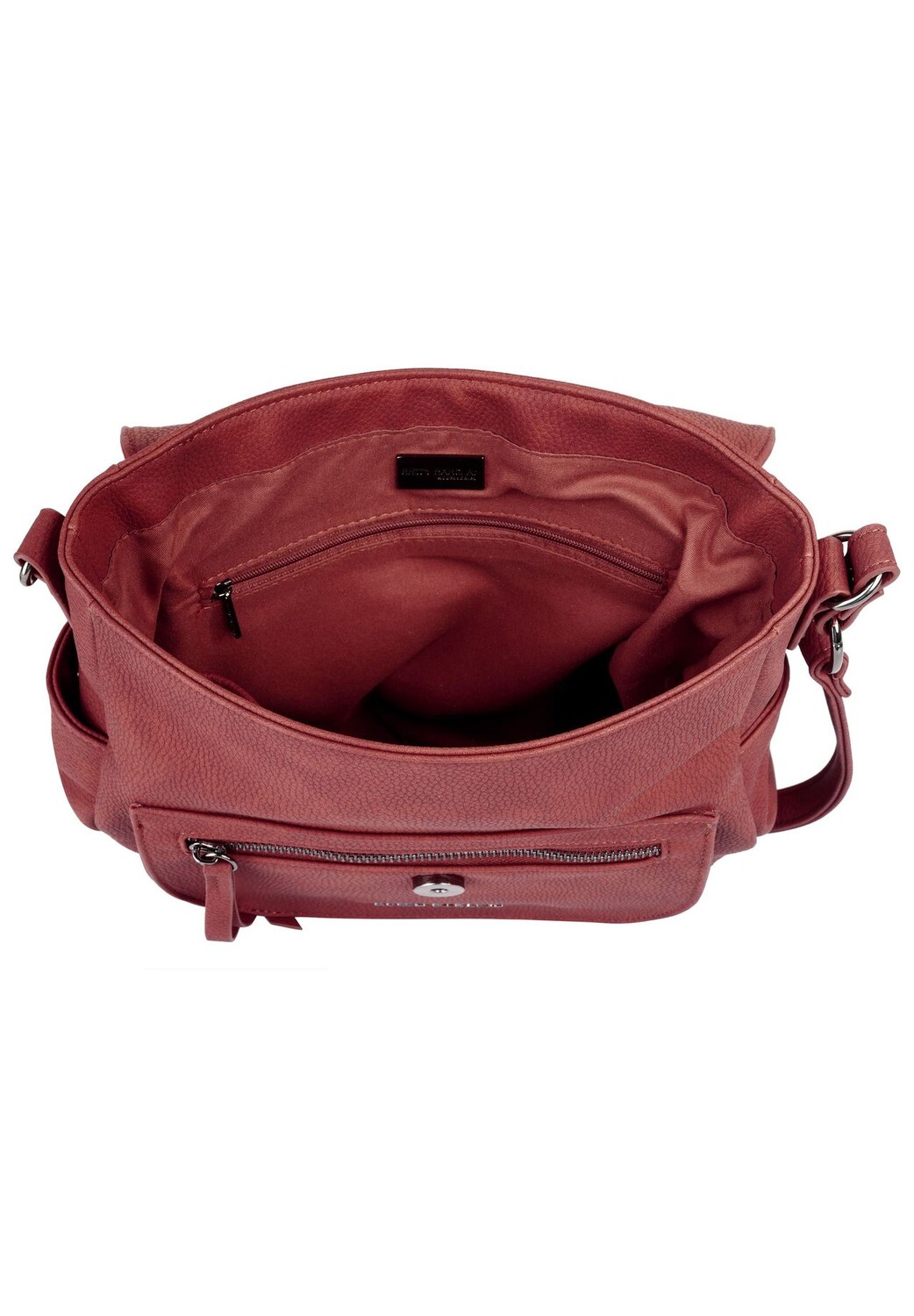 Модно, просто и практично: это сумка через плечо от Betty Barclay! Под очаровательной крышкой вы найдете основное отделение идеального размера для повседневной жизни. Смартфон, ключи, кошелек и многое другое найдут свое место здесь, рядом с вами. Для первых предусмотрен даже отдельный карман, чтобы вы могли держать свое устройство в безопасности и всегда под рукой. Дополнительные варианты вставки можно найти на внешней стороне сумки. * 1 клапан на магнитной застежке * 1 основное отделение * 1 накладной внутренний карман * 1 внутренний карман на молнии * 1 внутреннее отделение для смартфона (до 5,5 дюймов) * 1 переднее отделение на молнии * 1 заднее отделение на молнии * 2 боковых кармана * 1 плавно регулируемый плечевой ремень (65–120 см) * тонкий логотип спереди