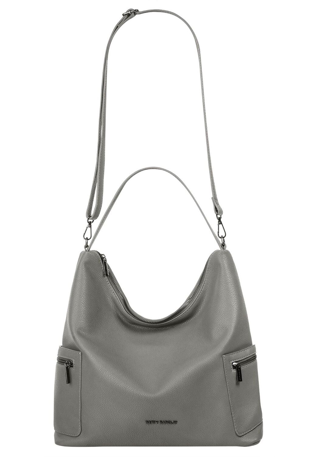Сумка через плечо Betty Barclay сочетает в себе комфорт и класс! Будь то повседневные предметы, покупки, рабочие материалы или просто самое необходимое: в просторном основном отделении найдется место для всего. Храните мелкие вещи, такие как смартфон, ключи и кошелек, чтобы они всегда были под рукой в доступных слотах. Внешне сумка выделяется своим минималистским шармом, дополненным и контрастирующим избранными металлическими элементами, и обогащает любой гардероб. * 1 основное отделение на молнии * 1 накладной внутренний карман * 1 внутренний карман на молнии * 1 внутреннее отделение для смартфона (до 6 дюймов) * 1 задний карман на молнии * 2 боковых кармана * 2 боковых кармана на молнии * 1 ручка для переноски * 1 бесконечный регулируемый съемный плечевой ремень (65–125 см) * тонкий логотип спереди * особенно легкий