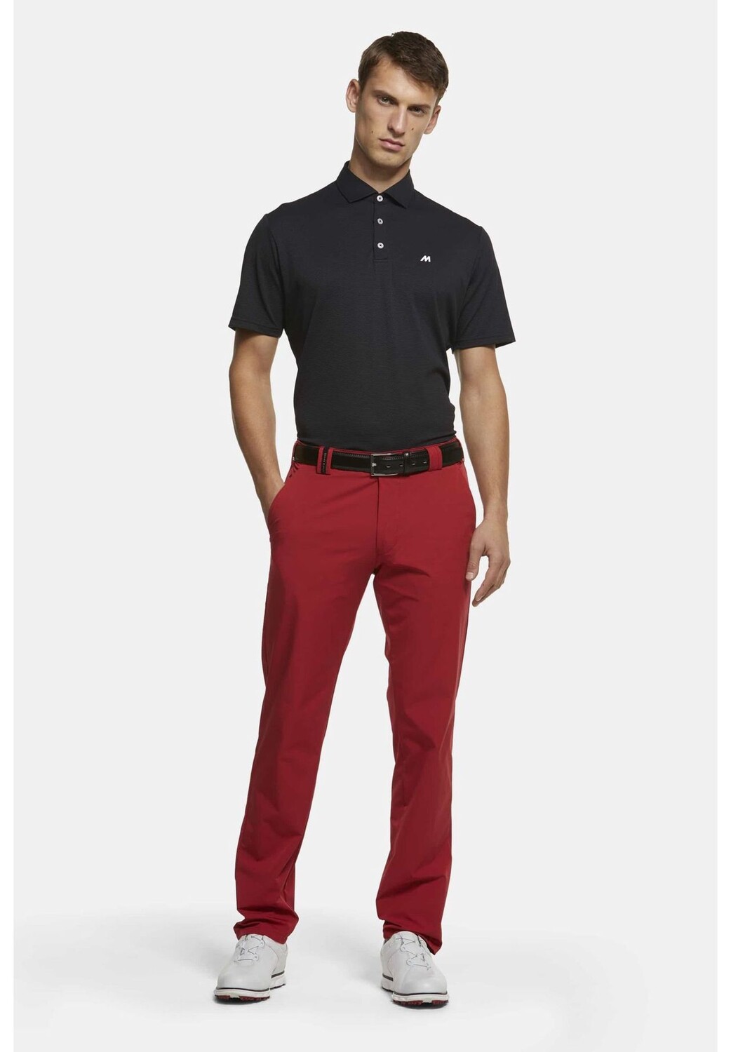 Спортивные брюки-чинос для гольфа имеют французские прорезные карманы, типичный для Meyer потайной карман безопасности и два задних кармана с двойной окантовкой. Как и все брюки серии Golf, одна из последних имеет невидимую силиконовую полоску, предотвращающую выскальзывание перчаток. Другой задний карман закрывается на серебряную молнию для большей безопасности. Удобный эластичный пояс закрывается застежкой, обеспечивающей максимальную стабильность размеров с помощью застежки-кнопки. Дышащий функциональный хлопок особенно легок и приятен для кожи, что обеспечивает неповторимый комфорт при ношении брюк Meyer.