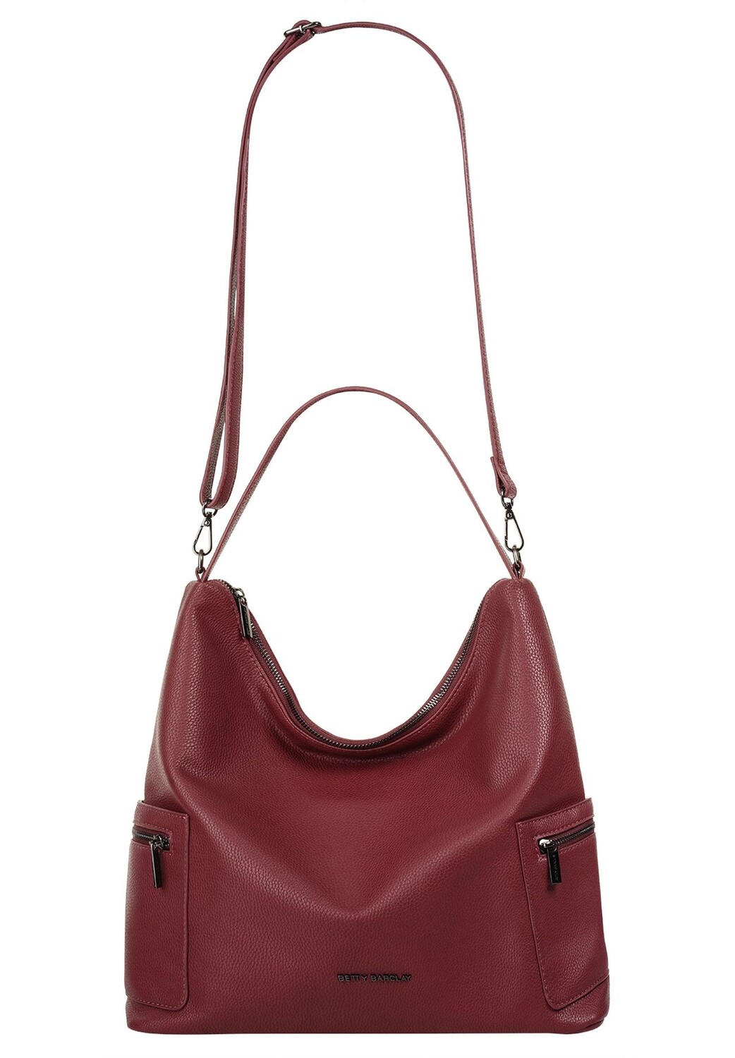 Сумка через плечо Betty Barclay сочетает в себе комфорт и класс! Будь то повседневные предметы, покупки, рабочие материалы или просто самое необходимое: в просторном основном отделении найдется место для всего. Храните мелкие вещи, такие как смартфон, ключи и кошелек, чтобы они всегда были под рукой в доступных слотах. Внешне сумка выделяется своим минималистским шармом, дополненным и контрастирующим избранными металлическими элементами, и обогащает любой гардероб. * 1 основное отделение на молнии * 1 накладной внутренний карман * 1 внутренний карман на молнии * 1 внутреннее отделение для смартфона (до 6 дюймов) * 1 задний карман на молнии * 2 боковых кармана * 2 боковых кармана на молнии * 1 ручка для переноски * 1 бесконечный регулируемый съемный плечевой ремень (65–125 см) * тонкий логотип спереди * особенно легкий