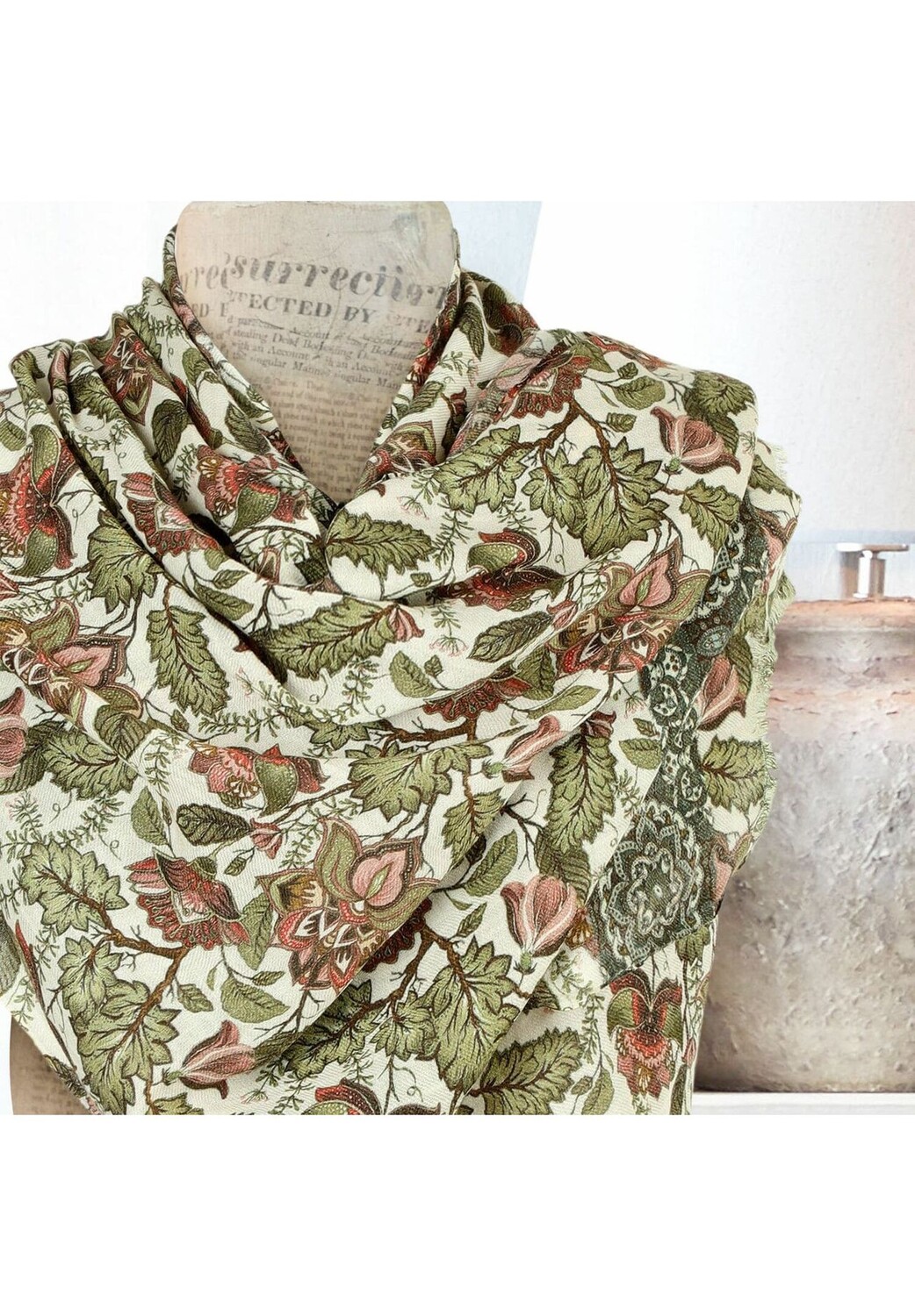 Элегантное сочетание шерсти и шелка. С приятным ощущением мягкости. Напечатан красивый цветочный узор. Элегантный дизайн соткан и напечатан. Он мягко прилегает к коже и защищает шею и зону декольте от сквозняков и холода. Разумеется, этот вместительный аксессуар можно стирать, поэтому он всегда остается свежим и чистым. Придайте каждому наряду романтичность и женственность и с нетерпением ожидайте появления нового любимого аксессуара, который будет сопровождать вас на прогулках, прогулках и прогулках.