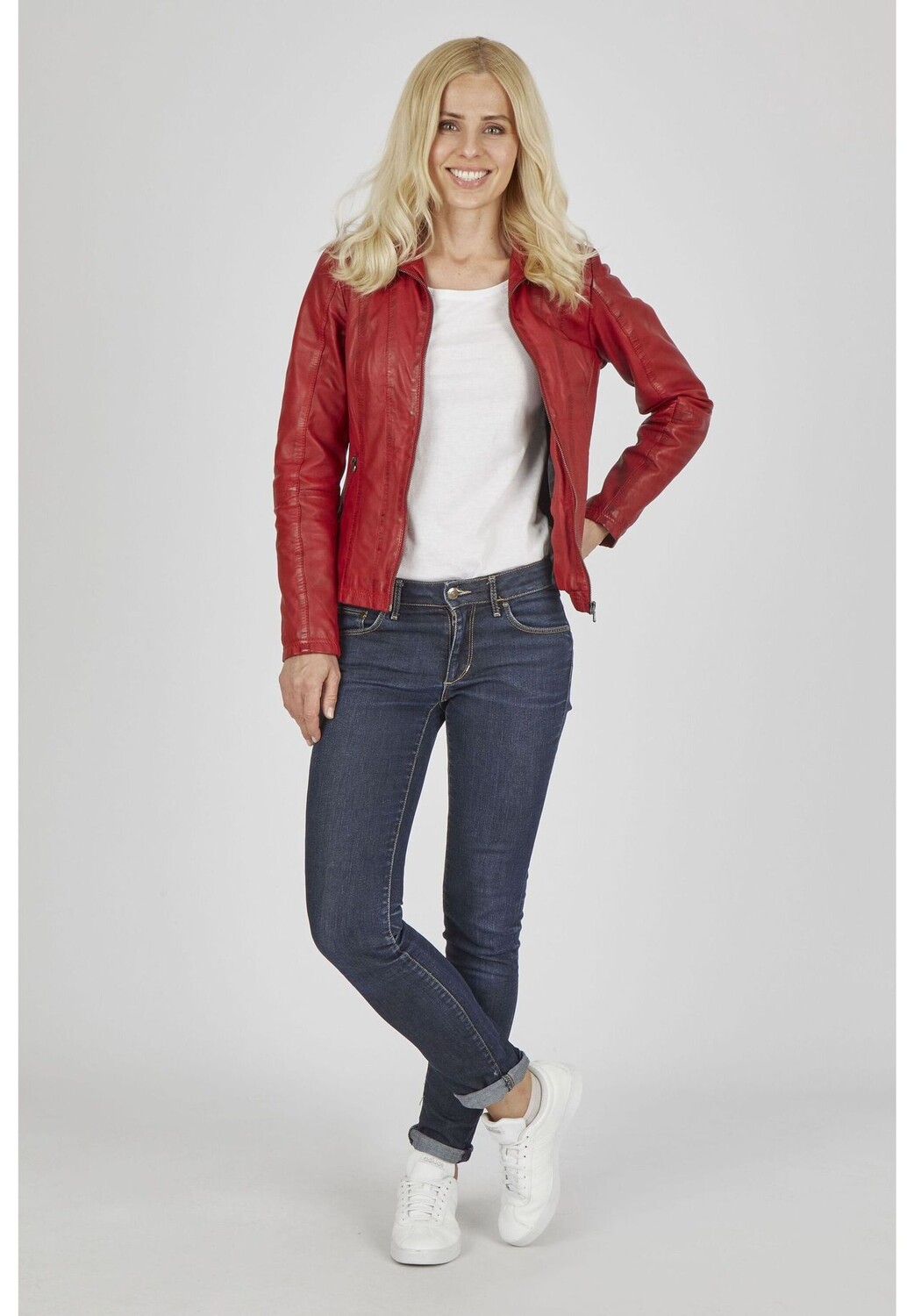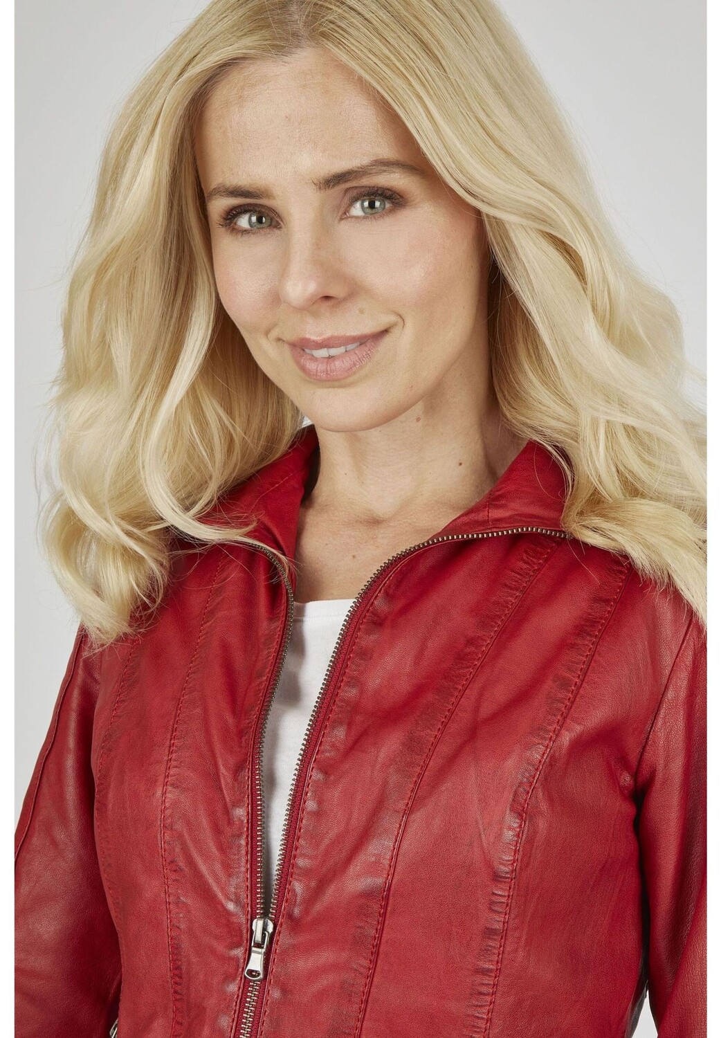 Эта кожаная куртка от 7ELEVEN из высококачественной кожи ягненка наппа растительного дубления очень модна. Модель впечатляет своей современной, слегка индивидуальной посадкой и оттенком поношенности. Два боковых кармана на молнии, высокий воротник и изогнутые швы завершают современный дизайн.