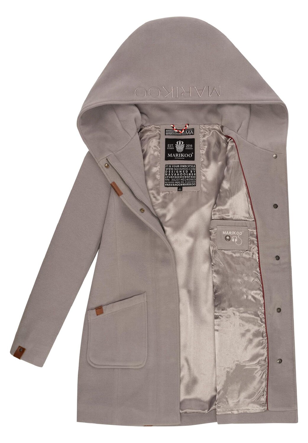 Описание товара: ВИД: Элегантное женское пальто в стиле шерстяного пальто с большим капюшоном от Marikoo, прекрасно сочетается с элегантными или городскими образами. МАТЕРИАЛ: Женское полупальто из мягкой внешней ткани в шерстяном стиле. (не царапается), бархатистая внутренняя подкладка. Блестящая, гладкая ткань. ПОсадка: Слегка скроенная зимняя куртка с идеальной длиной по низу, очень удобная в ношении. ДЕТАЛИ: Элегантная шерстяная куртка с планкой на кнопках перед передней молнией, большой капюшон. с вышитым логотипом и практичными большими боковыми карманами. Эта стильная женская зимняя парка в шерстяном исполнении впечатляет классическим и элегантным внешним видом и идеальной посадкой - идеально подходит для холодного времени года (осени и зимы). Элегантное зимнее пальто в шерстяном исполнении.