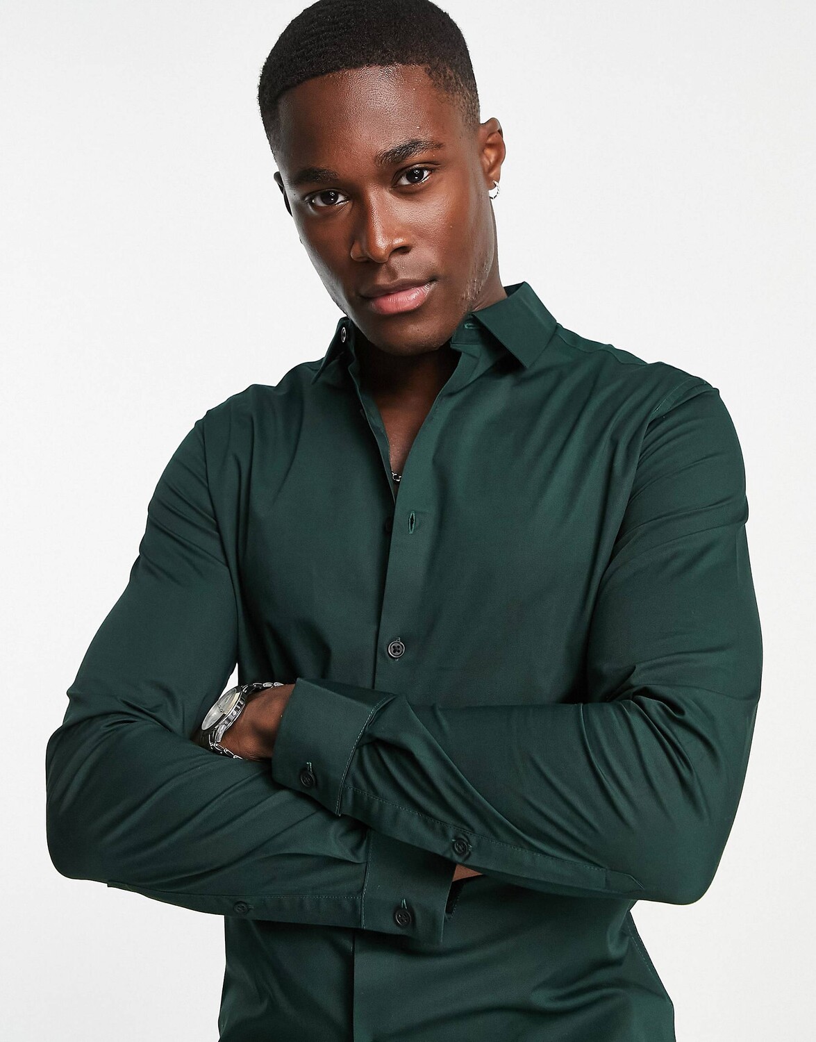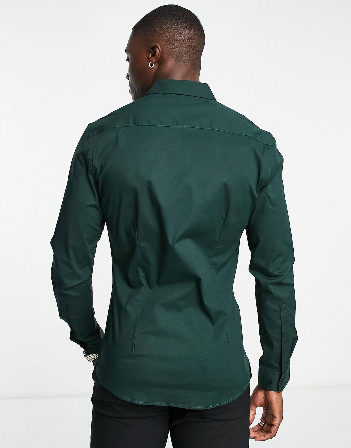 Темно-зеленая рубашка скинни ASOS DESIGN