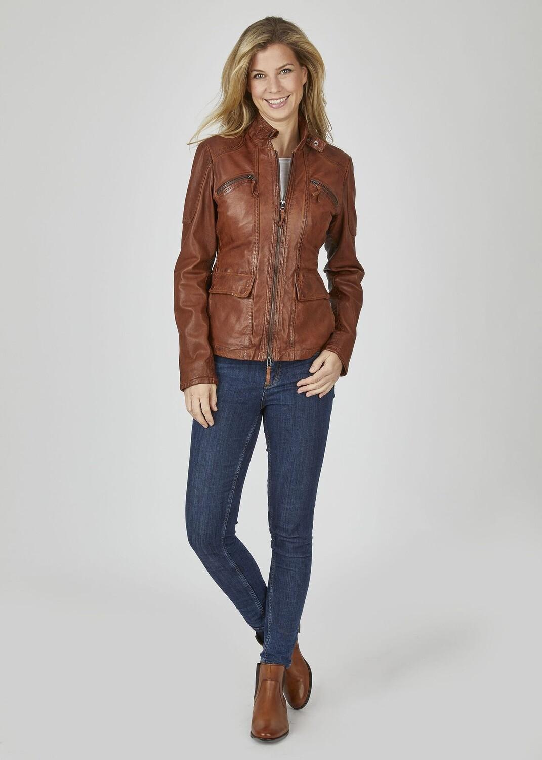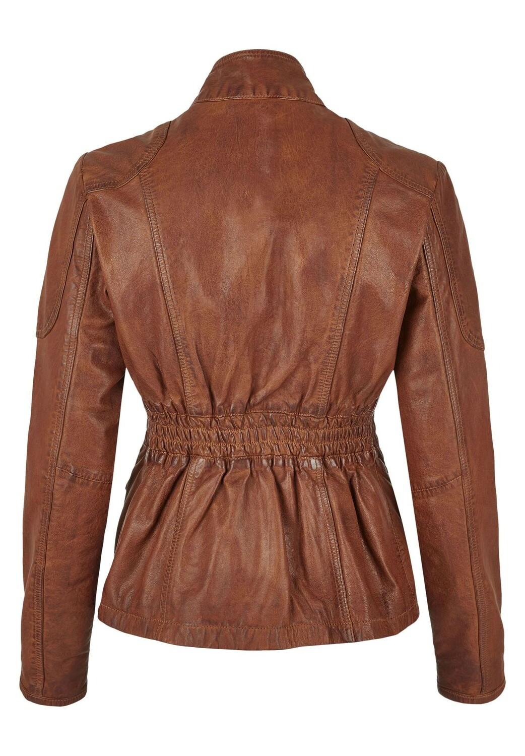 Спортивная женская кожаная куртка от 7eleven из кожи наппа ягненка растительного дубления придаст завершающий штрих вашему повседневному образу. Оборка сзади и слегка удлиненный индивидуальный крой обеспечивают идеальную посадку по фигуре. Модные детали этой кожаной куртки включают воротник-стойку с регулируемым кожаным ремешком, два накладных нагрудных кармана и практичные двусторонние прорезные карманы. Эта кожаная куртка станет изюминкой вашего образа.