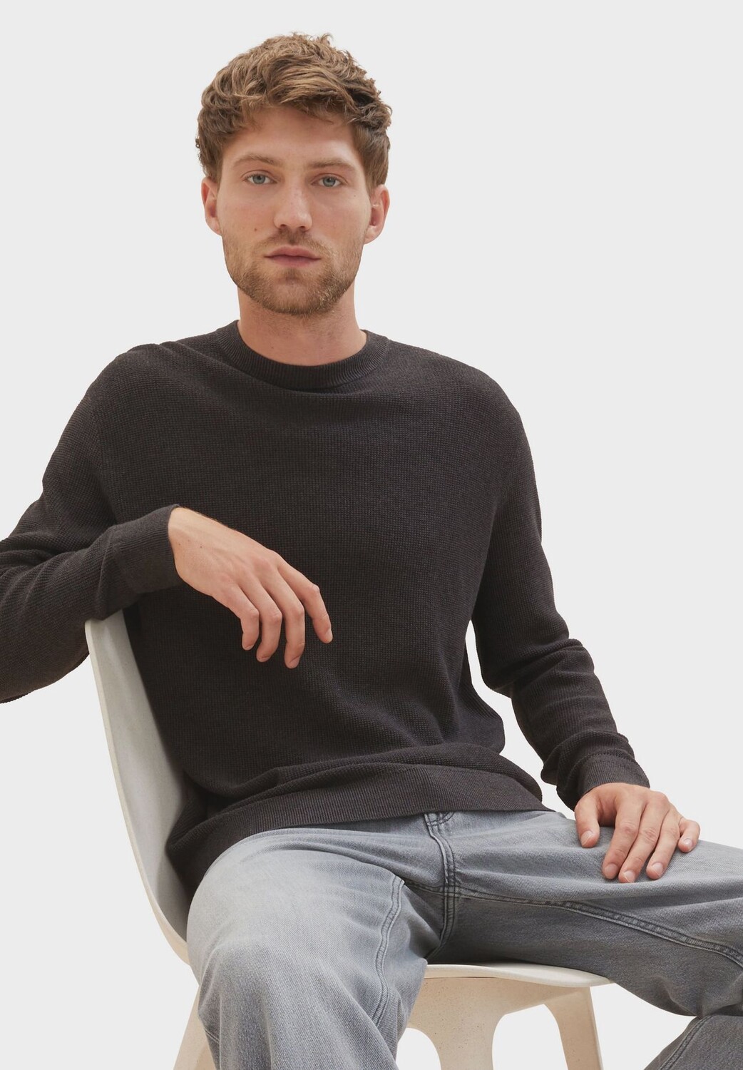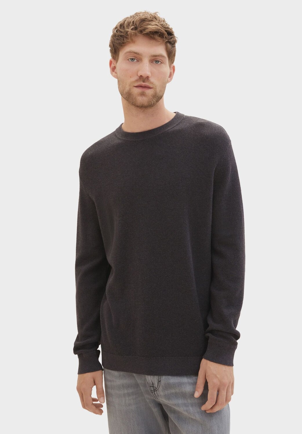 Пуловер, круглый вырез, ребристые манжеты, мужской TOM TAILOR, цвет Black Grey