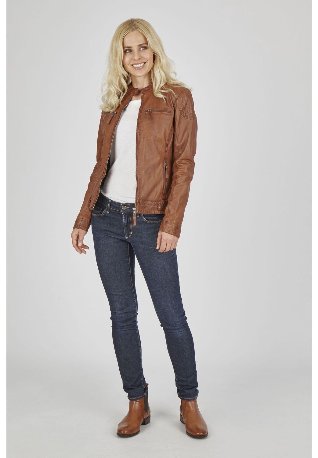 Эта классическая кожаная куртка от 7ELEVEN изготовлена из высококачественной кожи ягненка наппа растительного дубления. Ультрамягкий материал и тонкая внутренняя подкладка из чистого хлопка обеспечивают оптимальный комфорт. Декоративные детали, такие как стежка и кожаные ремни по нижнему краю, дополняют простой и элегантный дизайн. Специальная обработка поверхности обеспечивает слегка матовый блеск.