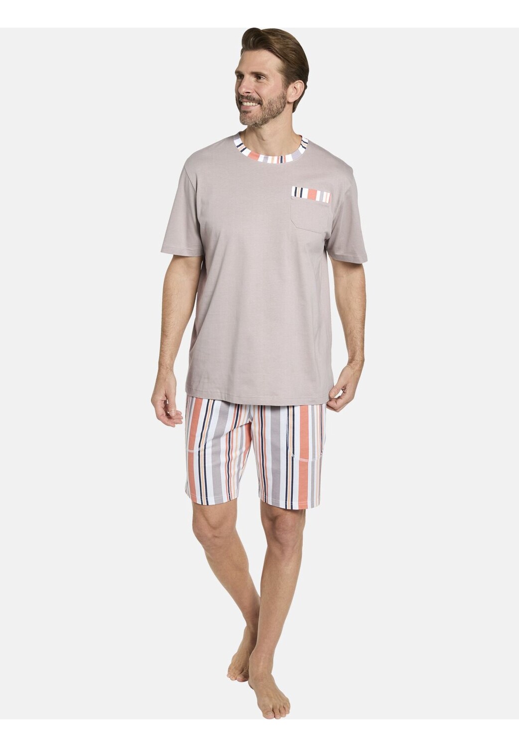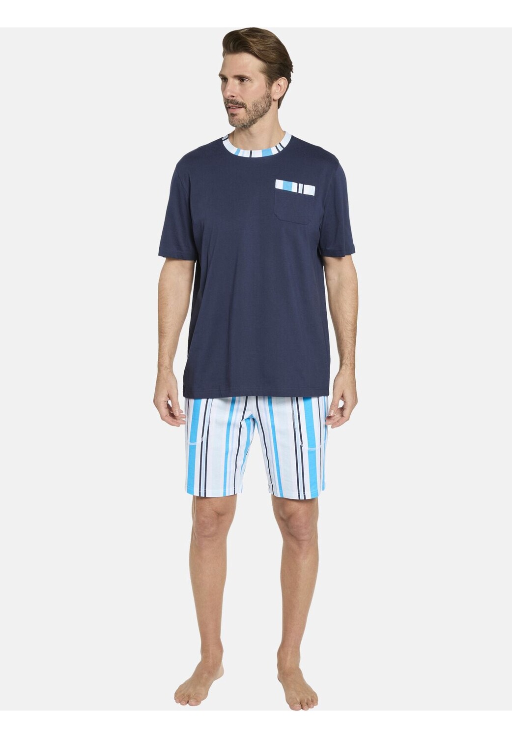 Особенности Стирать с похожими цветами, Стирать наизнанку, Гладить наизнанку с практичными нагрудными карманами бежевый темно-синий Гладить при низкой температуре Пижама VERIANO в двойной упаковке За ней приятно и легко ухаживать Модный узор в нескольких цветах Эластичный пояс с кулиской Практические карманы