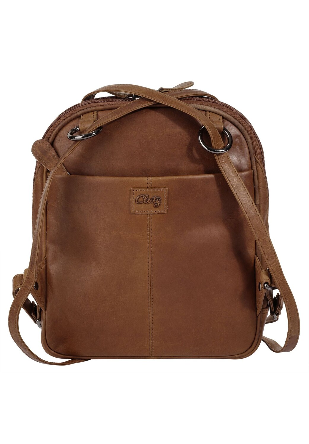 Описание товара: Если вы ищете практичного спутника на каждый день, вы попали по адресу! Кожаный рюкзак от Cluty имеет два отдельных основных отделения – одно на молнии, другое с отделением для смартфона, держателями для ручек и отделениями для визиток. Идеально подходит для путешествий — будь то воскресная прогулка по городу, очередная экскурсия или оживленная вечерняя вечеринка. * Изготовлен из 100% воловьей кожи * 2 основных отделения, состоящих из двух частей, на молнии * 2 внутренних кармана на молнии * 1 внутренний карман на молнии * 1 внутреннее отделение для смартфона (до 5,5 дюймов) * 2 держателя для ручек внутри * 4 отделения для визиток внутри * 1 внешний карман на молнии * 1 передний карман на молнии * 1 заднее отделение на молнии * 2 плавно регулируемых ремня * изящное тиснение логотипа сзади