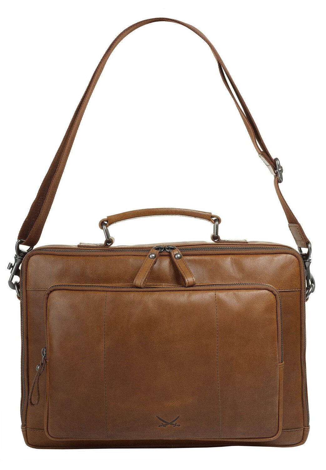 Кожаный портфель от Sansibar – идеальный спутник в путешествии и работе! Он оснащен всем, что может понадобиться в повседневной деловой жизни: мягкое отделение для ноутбука или планшета, отделение для смартфона и держатель для ручек. Благодаря молнии от пола до потолка основное отделение открывается особенно широко. Благодаря съемным ремням для переноски сумку можно носить не только за ручку или через плечо, но и как рюкзак! Мягкая спинка гарантирует комфортное ношение. * 100% воловья кожа * 1 основное отделение на молнии * 1 внутренний карман на молнии * 1 внутренний накладной карман * 2 держателя для ручек внутри * 1 внутреннее отделение для смартфона (до 5,5 дюймов) * 1 внутреннее отделение для ноутбука с мягкой подкладкой (до 16 дюймов) * 1 передний карман на молнии * 1 задний карман на молнии * держатель на тележке сзади * 1 ручка для переноски * плавно регулируемый съемный плечевой ремень (75–140 см) * также можно носить как рюкзак * мягкая спинка