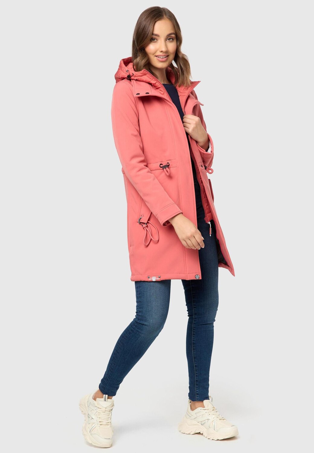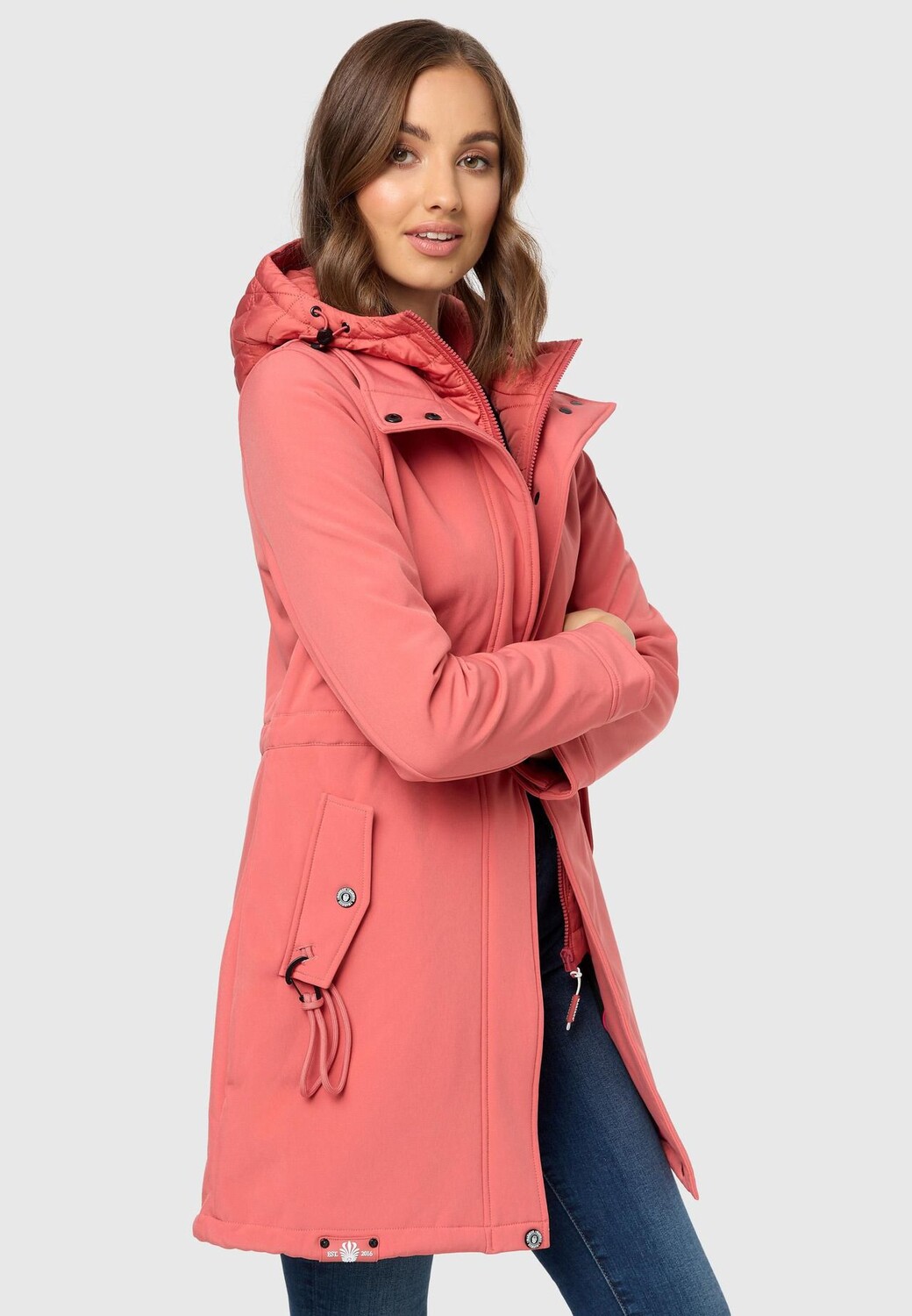 Описание товара: ВИД: Стильное женское пальто из софтшелла с большим стеганым капюшоном и контрастными цветными деталями внутри – шикарная и функциональная куртка для активного отдыха в переходный период или прохладными летними вечерами. МАТЕРИАЛ: Всепогодная куртка с нескользящим, водонепроницаемым и ветрозащитным наружным материалом, мягкая флисовая внутренняя подкладка обеспечивает особенно удобную посадку и сохраняет тепло и тепло, а сетчатая подкладка гарантирует отличную воздухопроницаемость. ПОДХОД: Функциональная куртка отлично подчеркивает фигуру. Благодаря слегка специально скроенному крою и кулиске на талии, она имеет большую длину примерно до середины бедра (сзади немного длиннее, чем спереди, крой «ласточкин хвост»). ДЕТАЛИ: Куртка для отдыха на открытом воздухе с высоким воротником, на подкладке снаружи. карманы и края рукавов, регулируемые с помощью кнопки, предотвращающие раздражающее проникновение холодного ветра и влаги.