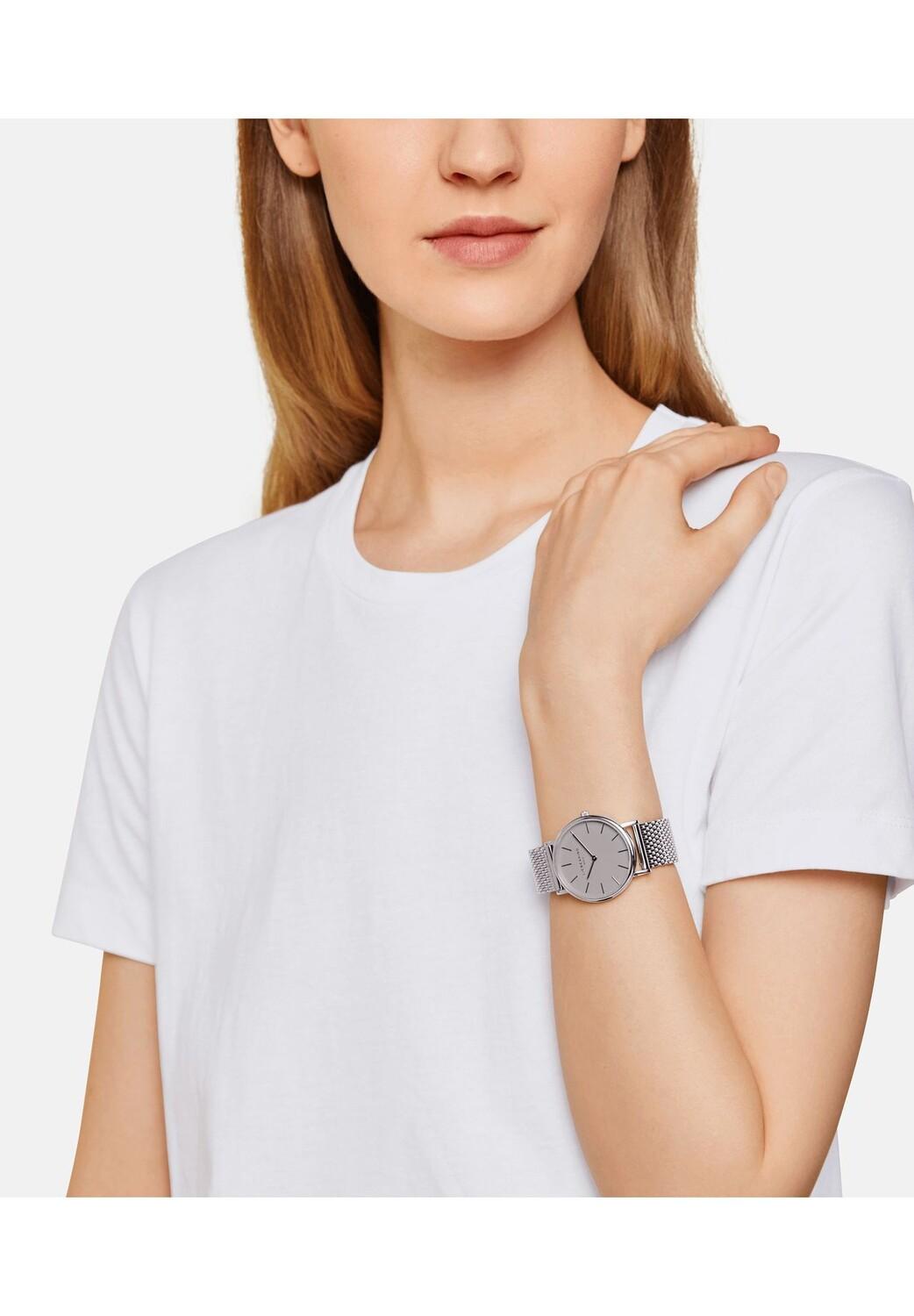 Особенные характеристики Женские часы с двумя стрелками от бренд LIEBESKIND BERLIN с корпусом из нержавеющей стали и сетчатым браслетом из высококачественной нержавеющей стали корпус из полированной нержавеющей стали Ø 34 мм; устойчивое к царапинам минеральное стекло; Водонепроницаемость проверена до 5 бар/атм. Браслет из высококачественной сетки из нержавеющей стали с раскладывающейся застежкой.
