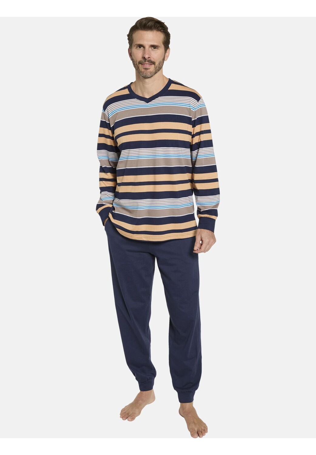 BABISTA уже 30 лет вдохновляет мужчин, следящих за модой, чувством качества. Пижамы VANZO от BABISTA — это универсальный вариант одежды для сна, неподвластный времени. Неподвластный времени рисунок топа с современным V-образным вырезом и удобными манжетами ясно подчеркивает, что в VANZO вас ждет стильная ночь. Помимо эластичного пояса, брюки оснащены эластичными манжетами, которые обеспечат вам максимальный комфорт во время сна. Маленькое путешествие в мир модных мечтаний начинается с пижамы VANZO. Материал: 100% хлопок. Машинная стирка.