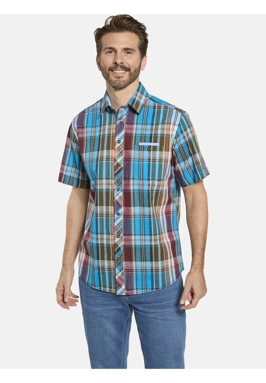 Особенности Стандартная стирка при 40° в деликатном режиме Стирка с похожими цветами , стирать наизнанку, Гладить слева Синяя клетка Изящный клетчатый дизайн Рубашка с короткими рукавами BELLIANO с кентовым воротником Нагрудный карман с пуговицей Клетчатый узор, неподвластный времени