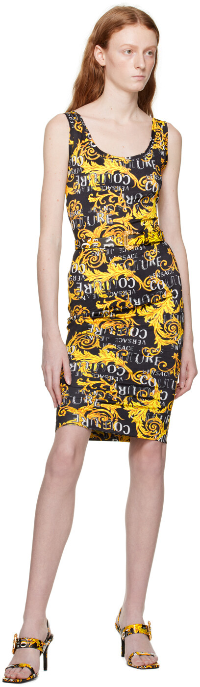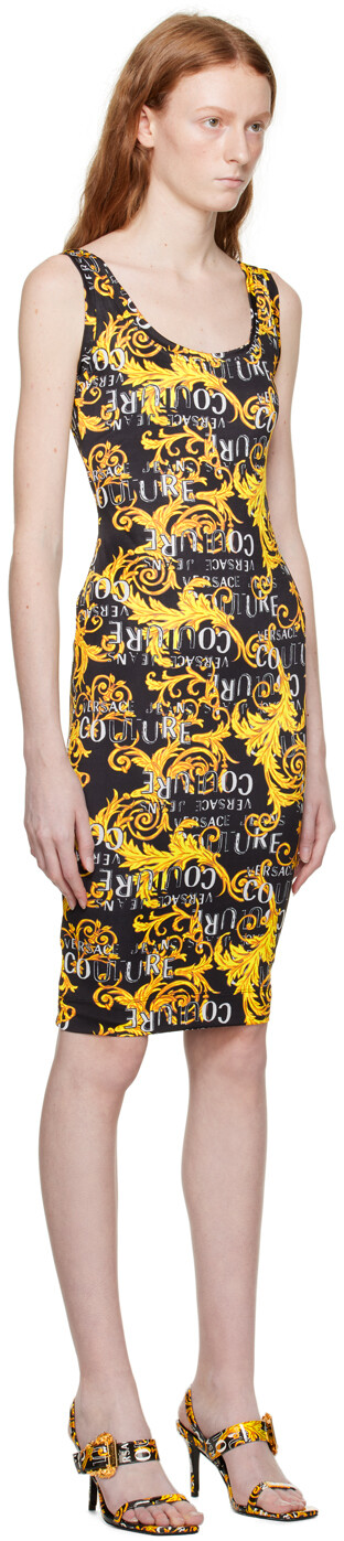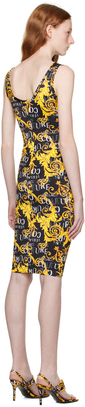 Черное платье-миди с рисунком Versace Jeans Couture