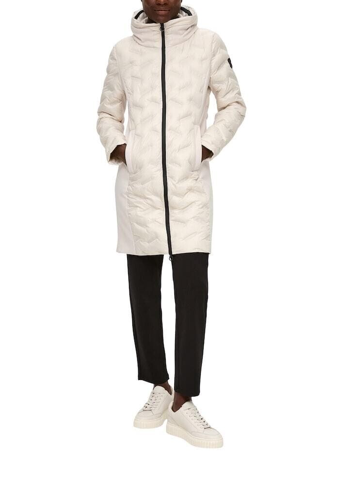 3D-эффект: специальная стежка и сочетание тканей с секциями софтшелл сразу бросаются в глаза на этом пальто. Другие элементы дизайна включают контрастную молнию и большой воротник-стойку со встроенным капюшоном. Для вашего стильного начала осени!